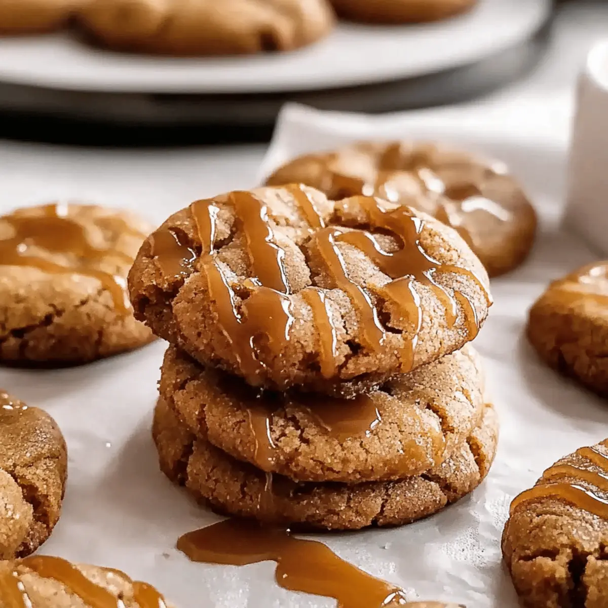 Once baked, allow the cookies to cool on the baking sheets for about 5 minutes, then transfer them to a wire rack. To glaze, brush each cooled cookie with a little of the reserved apple cider mixture, followed by a delicate drizzle of the caramel sauce. This finishing touch will elevate your Autumn Caramel Apple Cider Cookies to an irresistible treat!