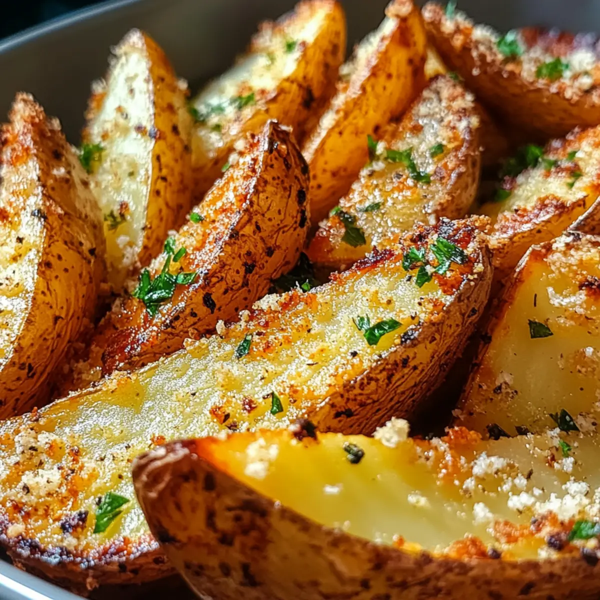 Crispy Baked Garlic Parmesan Potato Wedges for a Healthier Snack