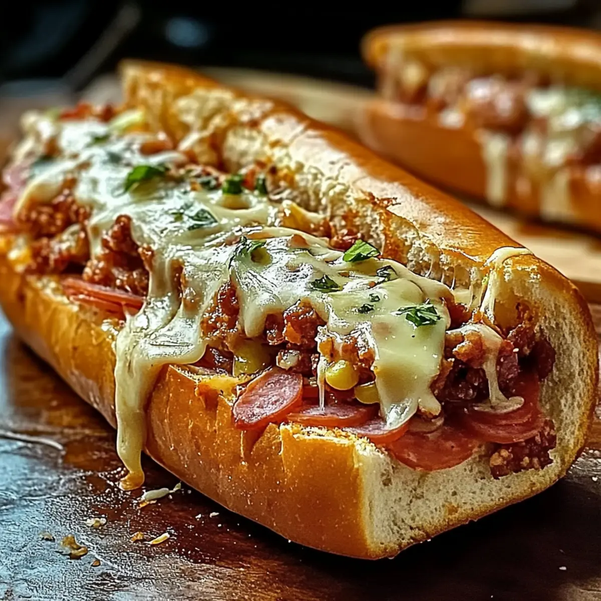 A tantalizing aroma fills the kitchen as I pull a steaming Baked Italian Sub Sandwich from the oven, its crispy crust golden and inviting. This delightful creation is not just a meal; it’s an experience filled with layers of savory meats, creamy provolone, and vibrant veggies, all nestled within a perfectly baked baguette. With just 15 minutes of prep and a total cook time of around 20 minutes, this dish transforms quick bites into something truly special. It’s a crowd-pleaser that satisfies your cravings and gives you the comfort of a homemade deli treat. Whether you’re gearing up for lunch or looking for a simple yet hearty dinner option, this recipe has you covered. Are you ready to embark on a flavorful journey that will elevate your sandwich game?