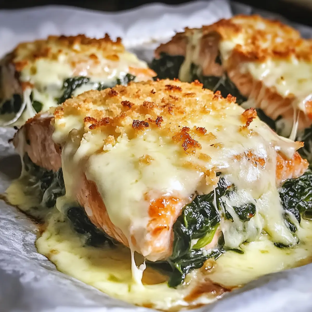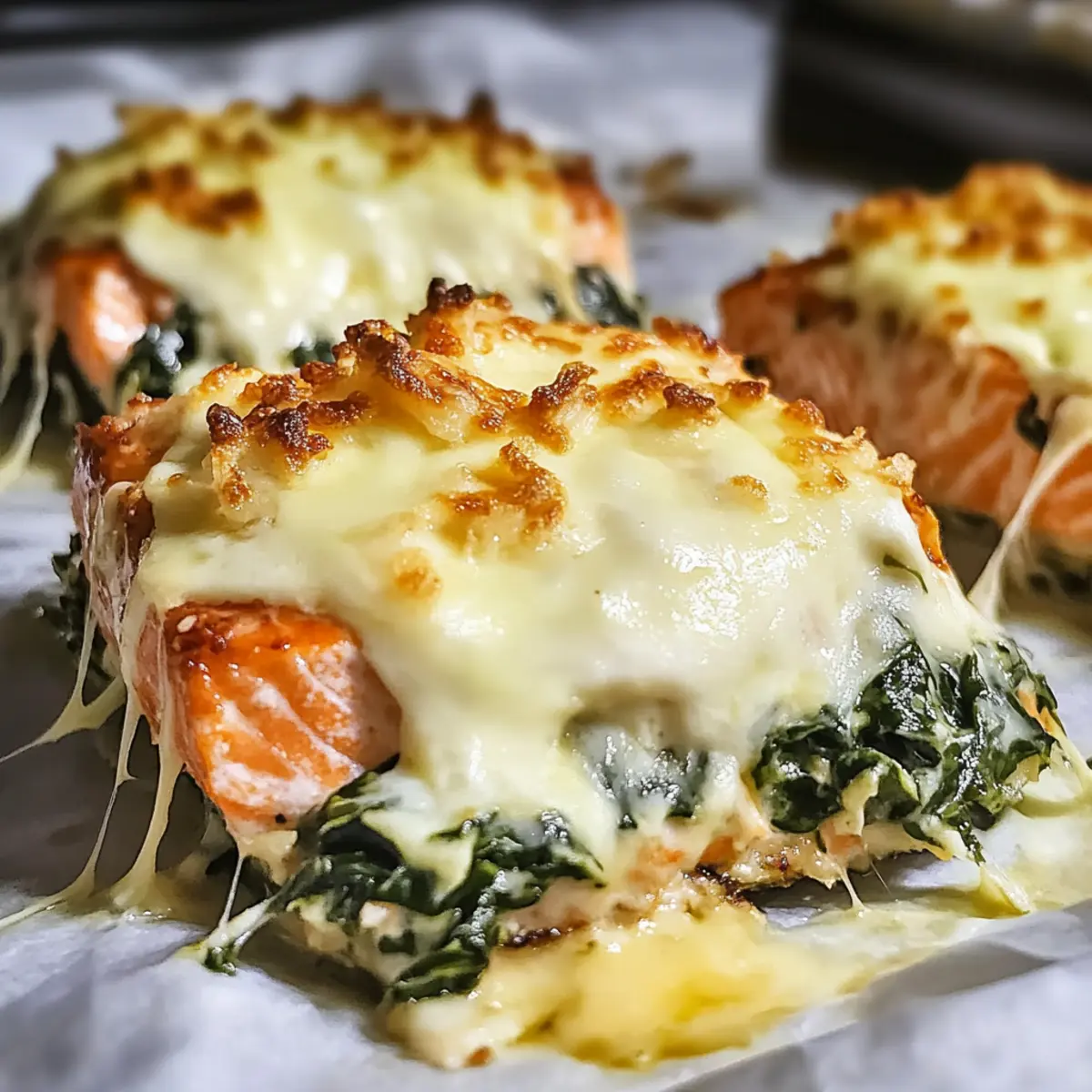 These Baked Salmon with Spinach and Mozzarella Bliss are perfect for meal prep, allowing you to savor delicious home-cooked flavors with less evening rush! You can prepare the creamy spinach mixture up to 24 hours in advance. To do this, simply sauté the onions and garlic, stir in the thawed spinach, then cool and fold in the sour cream. Store it in an airtight container in the refrigerator. When you’re ready to serve, just preheat your oven, assemble the dish with the salmon fillets, top it with the spinach mixture and mozzarella, and bake as instructed. With these simple make-ahead tips, you’ll enjoy a wholesome, gourmet meal without all the last-minute effort!