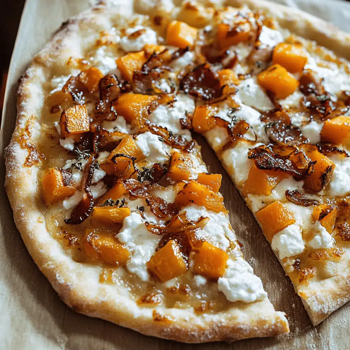 This Caramelized Onion, Bacon, Ricotta, and Butternut Squash Pizza brings together a medley of seasonal flavors that are sure to delight!