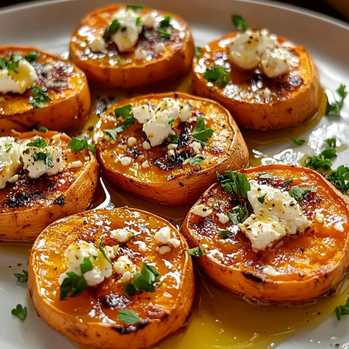 Delicious Roasted Sweet Potato Rounds with Honey & Feta Bliss