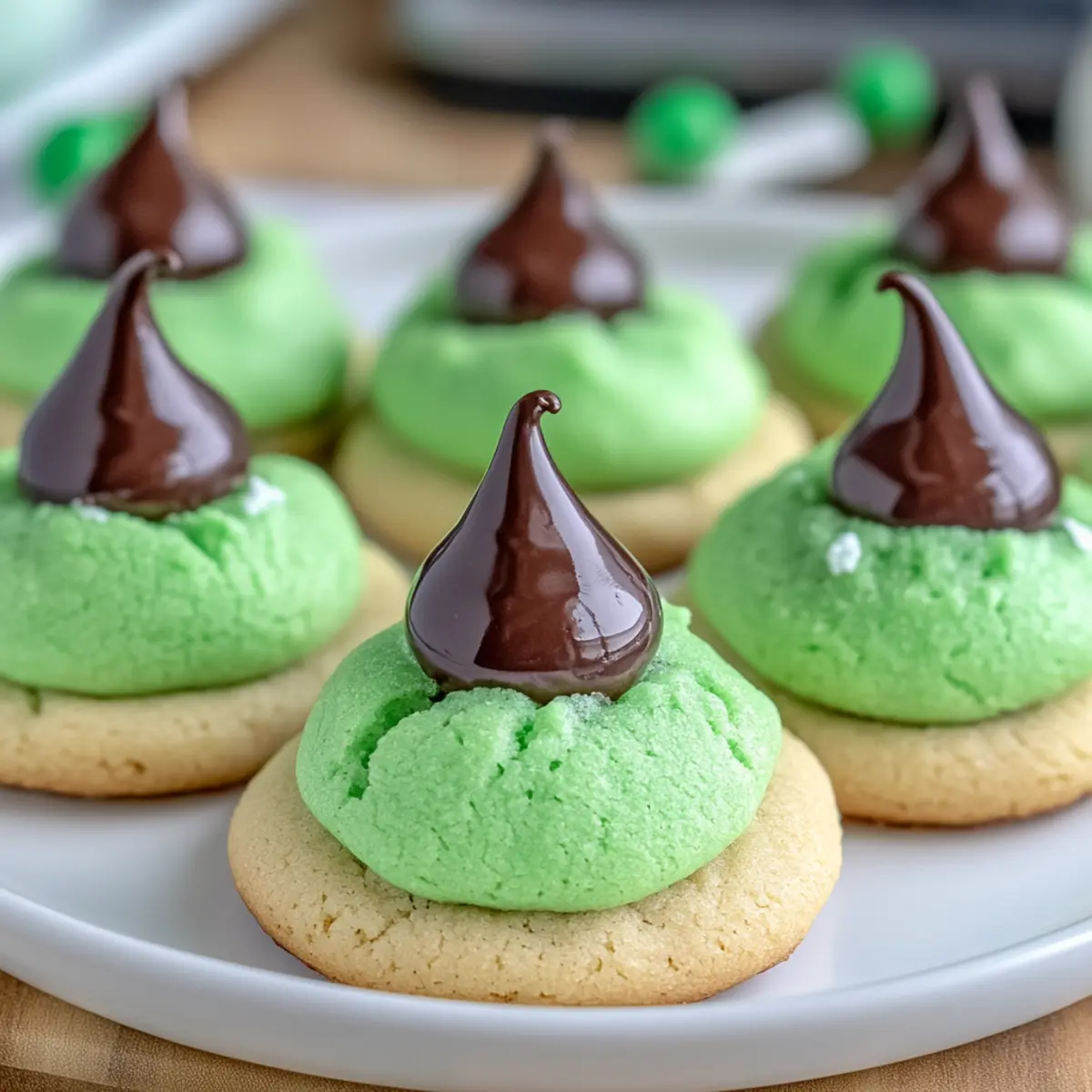 Melt-in-Your-Mouth Mint Chocolate Kiss Blossom Cookies