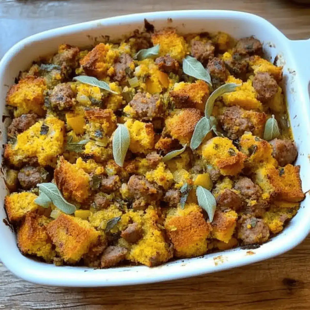 Pumpkin Cornbread Stuffing with Country Sausage and Sage Delight