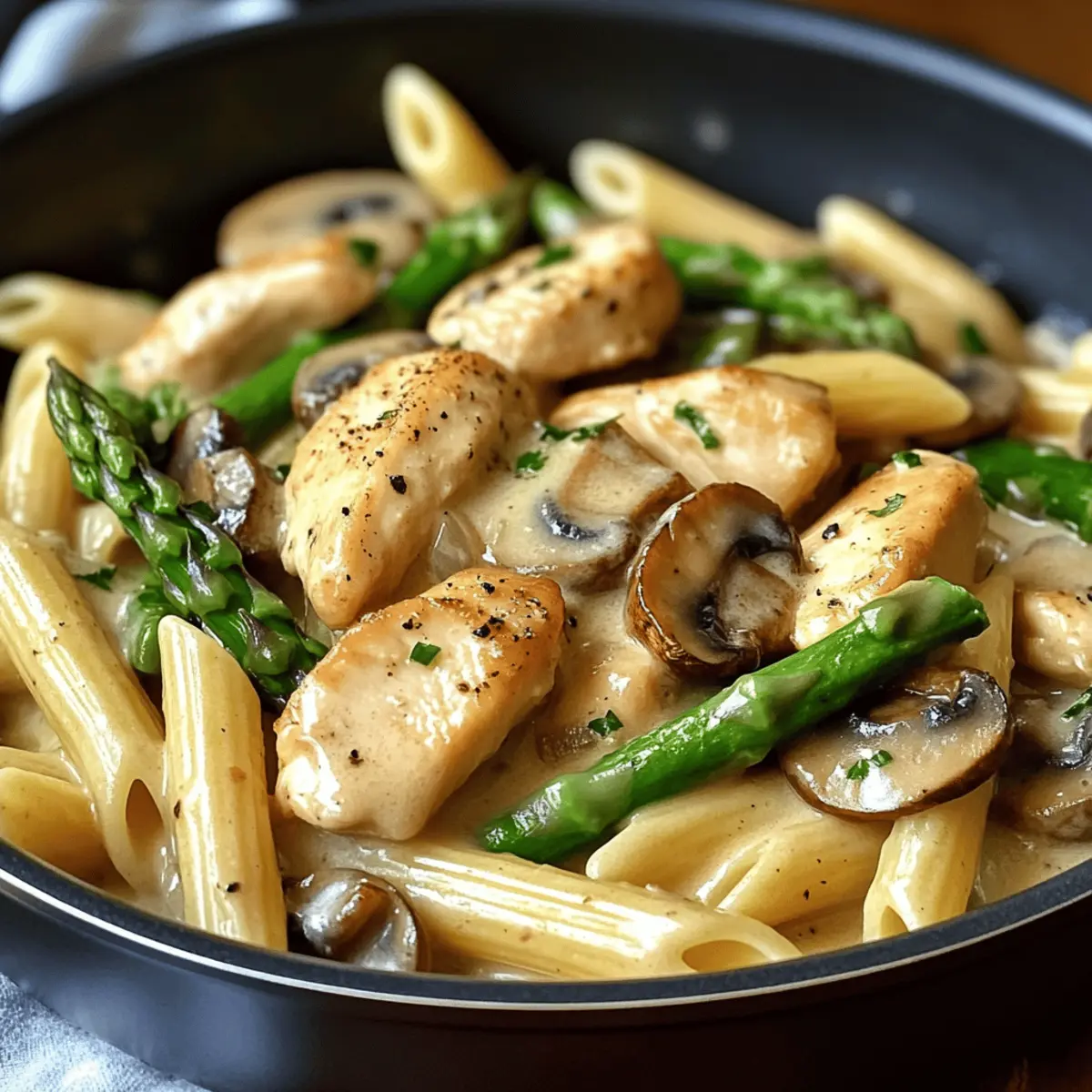 Creamy Mushroom and Asparagus Chicken Penne in 30 Minutes
