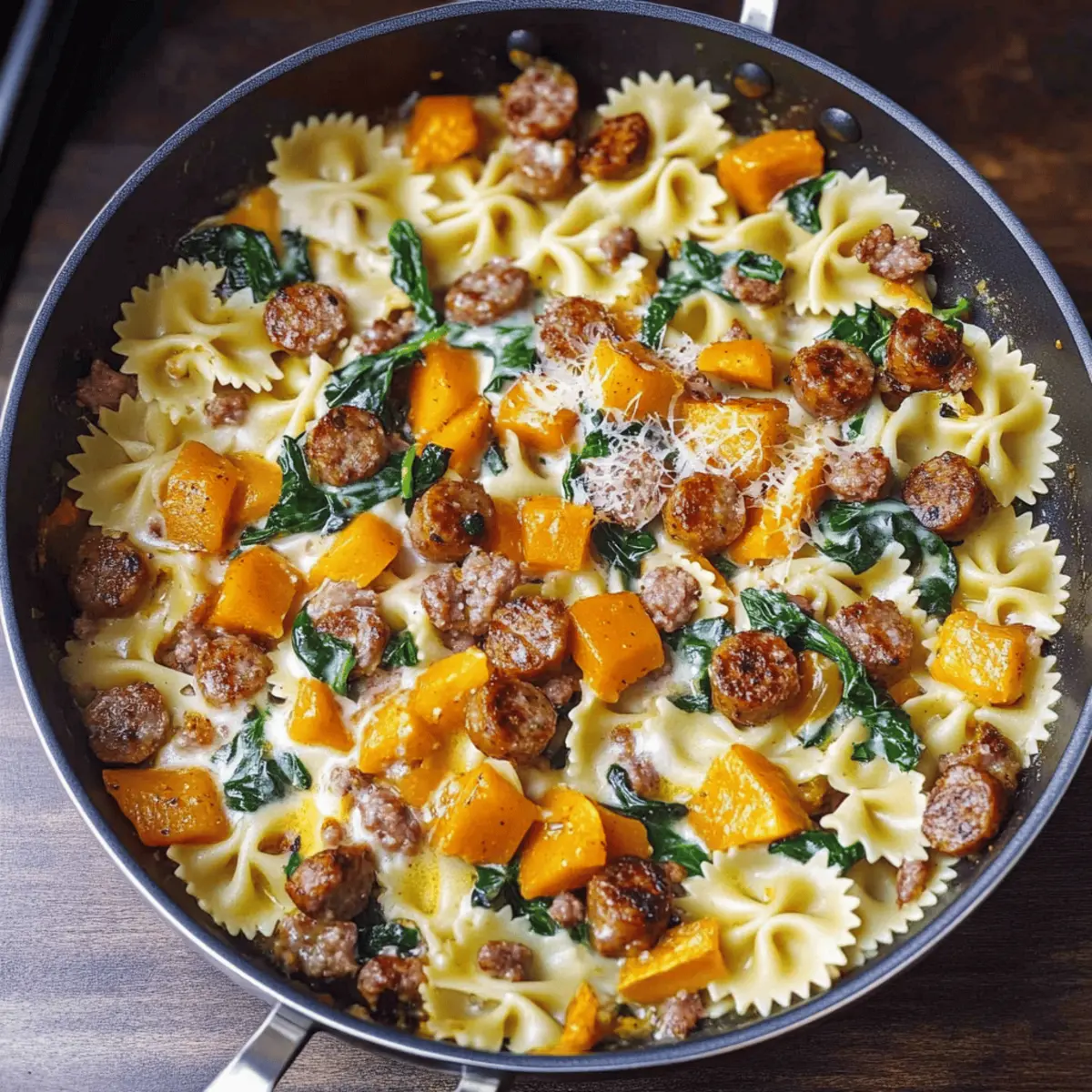 Creamy Roasted Butternut Squash Pasta with Sausage and Spinach Bliss
