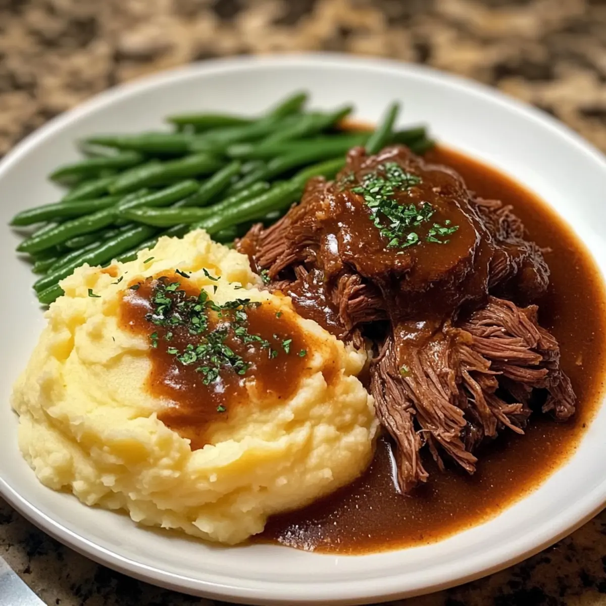 Savory Slow-Cooked Beef Pot Roast with Creamy Mash & Rolls
