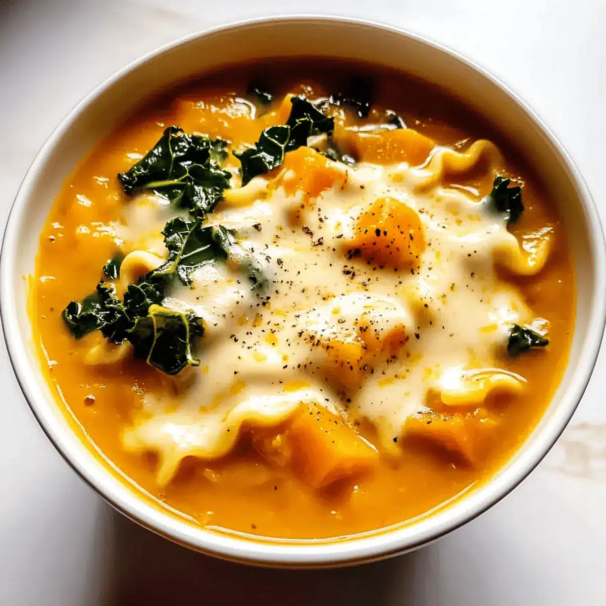 Creamy Butternut Squash Lasagna Soup with Kale & Mozzarella