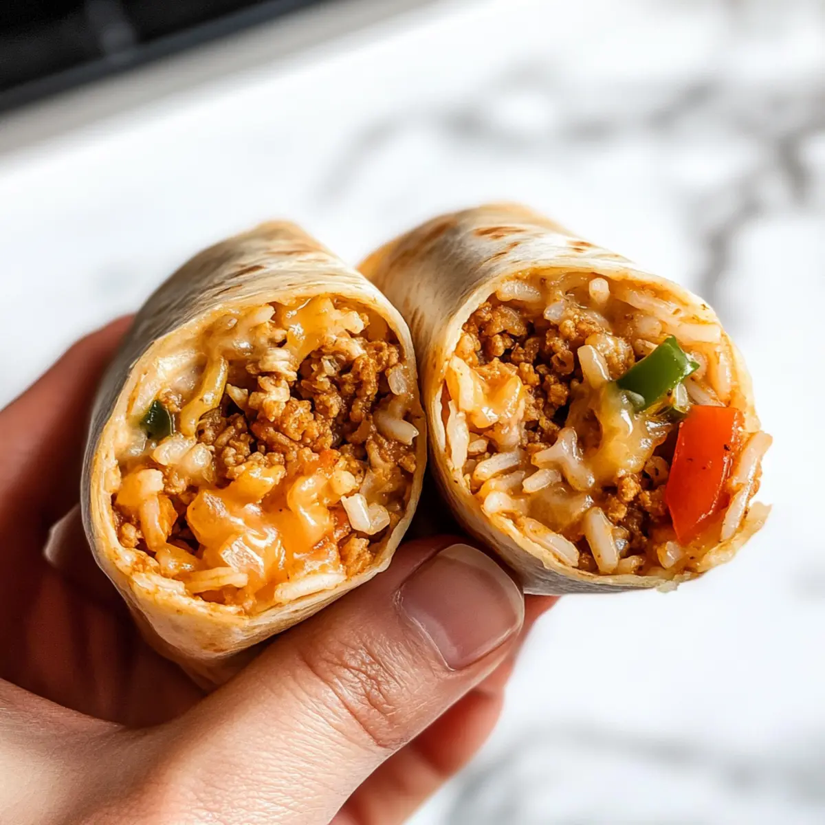 Preparing these Cheesy Ground Chicken and Rice Burritos in advance is a fantastic way to save time during busy weeknights! You can cook the filling (ground chicken, veggies, and spices) and refrigerate it for up to 3 days in an airtight container. Additionally, you can assemble the burritos and wrap them tightly in plastic wrap for up to 24 hours before toasting. To maintain their quality, cool the filling completely before refrigerating, which prevents sogginess. When you’re ready to enjoy them, simply toast the assembled burritos until golden brown, and you’ll have a delicious meal ready with minimal effort—perfect for impressing your family on hectic nights!