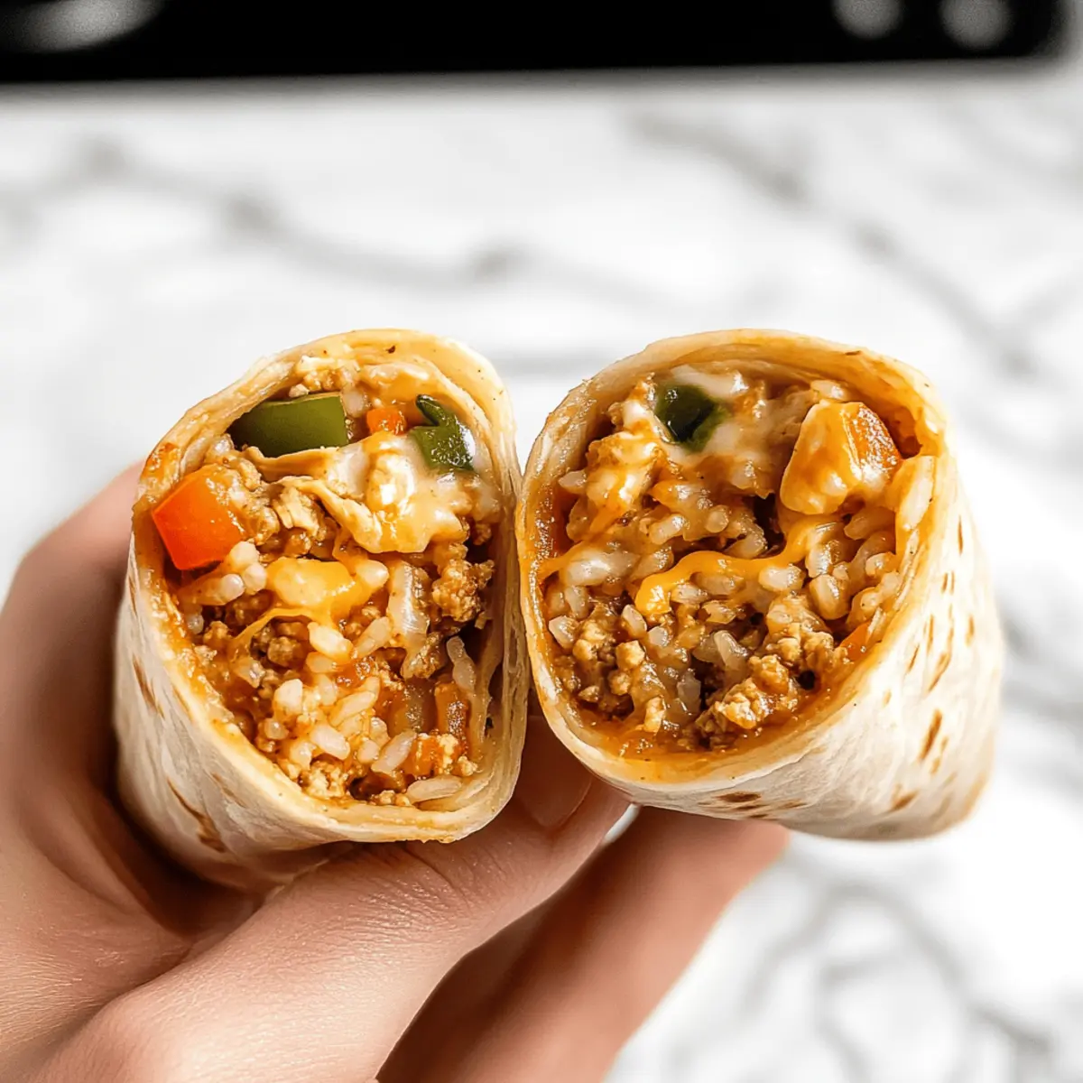 Cheesy Ground Chicken and Rice Burritos in Minutes