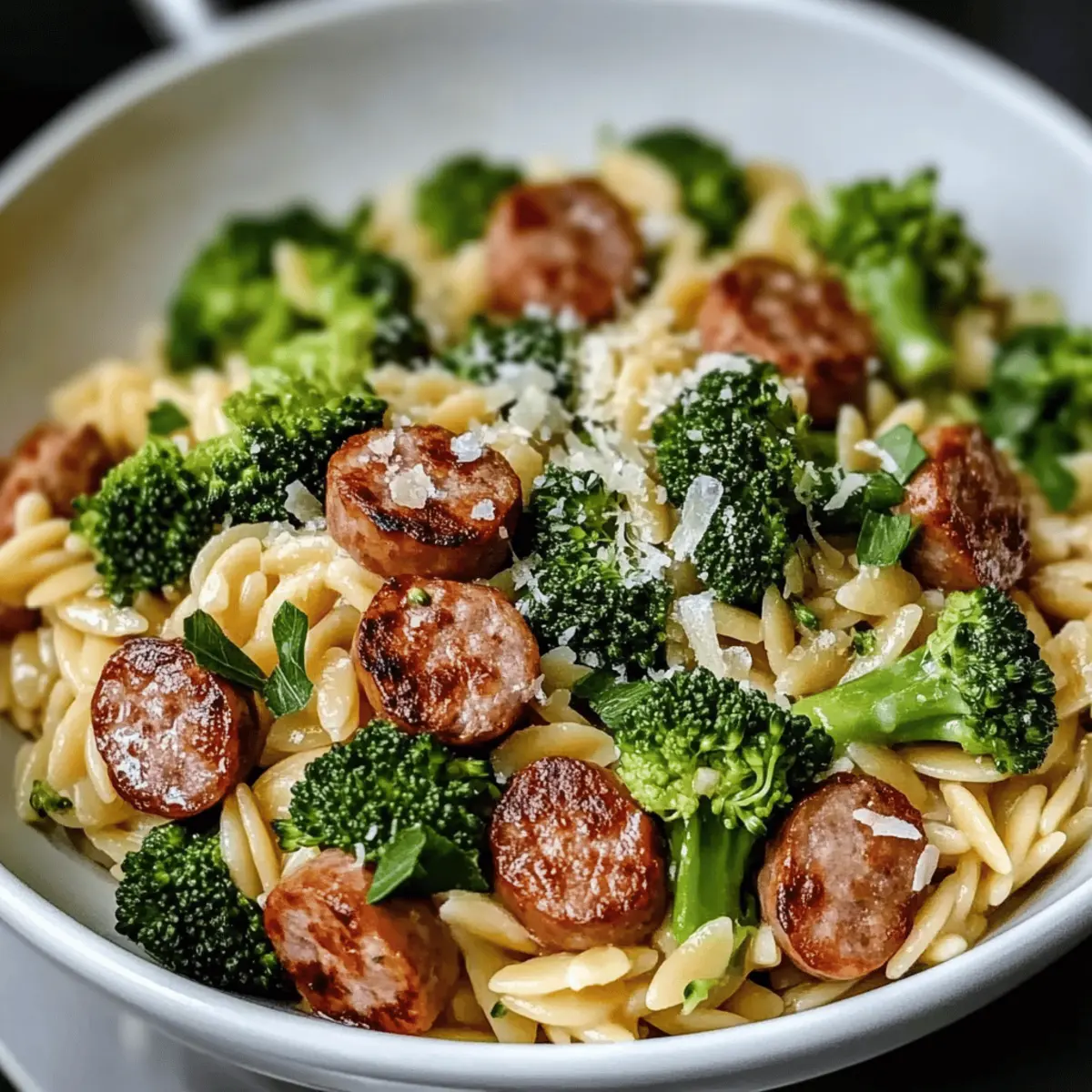 - Serve your Chicken Sausage and Broccoli Orzo hot, garnished with fresh parsley.
