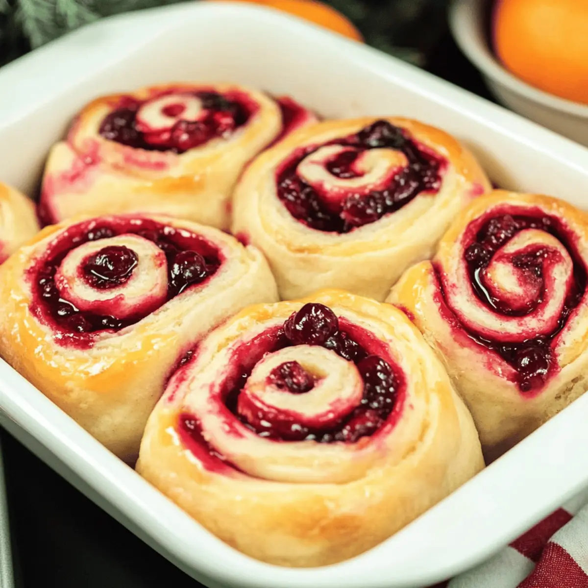 As the first light of dawn breaks on Christmas morning, the kitchen fills with the enchanting scent of fresh-baked Cranberry Orange Sweet Rolls. These fluffy delights are not just a treat; they’re a warm hug on a chilly holiday day. The combination of tart cranberries and bright orange zest creates a festive explosion of flavor, making them the perfect centerpiece for your holiday brunch. Plus, the quick prep time means you can spend less time in the kitchen and more time making memories with loved ones. As they rise, enjoy the anticipation—there’s something magical about homemade rolls, and I can’t wait for you to experience this joy. Are you ready to dive into the process and create a batch of these delightful rolls?