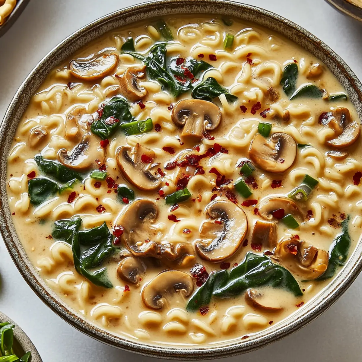 These Creamy Mushroom Vegan Ramen are ideal for meal prep enthusiasts! You can sauté the baby bella mushrooms and store them in an airtight container for up to 3 days in the refrigerator, keeping them fresh and ready to add richness to your broth. Additionally, you can measure out the vegetable broth and coconut milk, mixing them in a container overnight for a quicker assembly. When you’re ready to enjoy your ramen, simply reheat the mushrooms and broth mixture, add in the ramen noodles, and cook for about 3 minutes until tender. Finish by stirring in the fresh spinach and garnishing with green onions for a delightful meal that feels just as fresh as when you first made it!