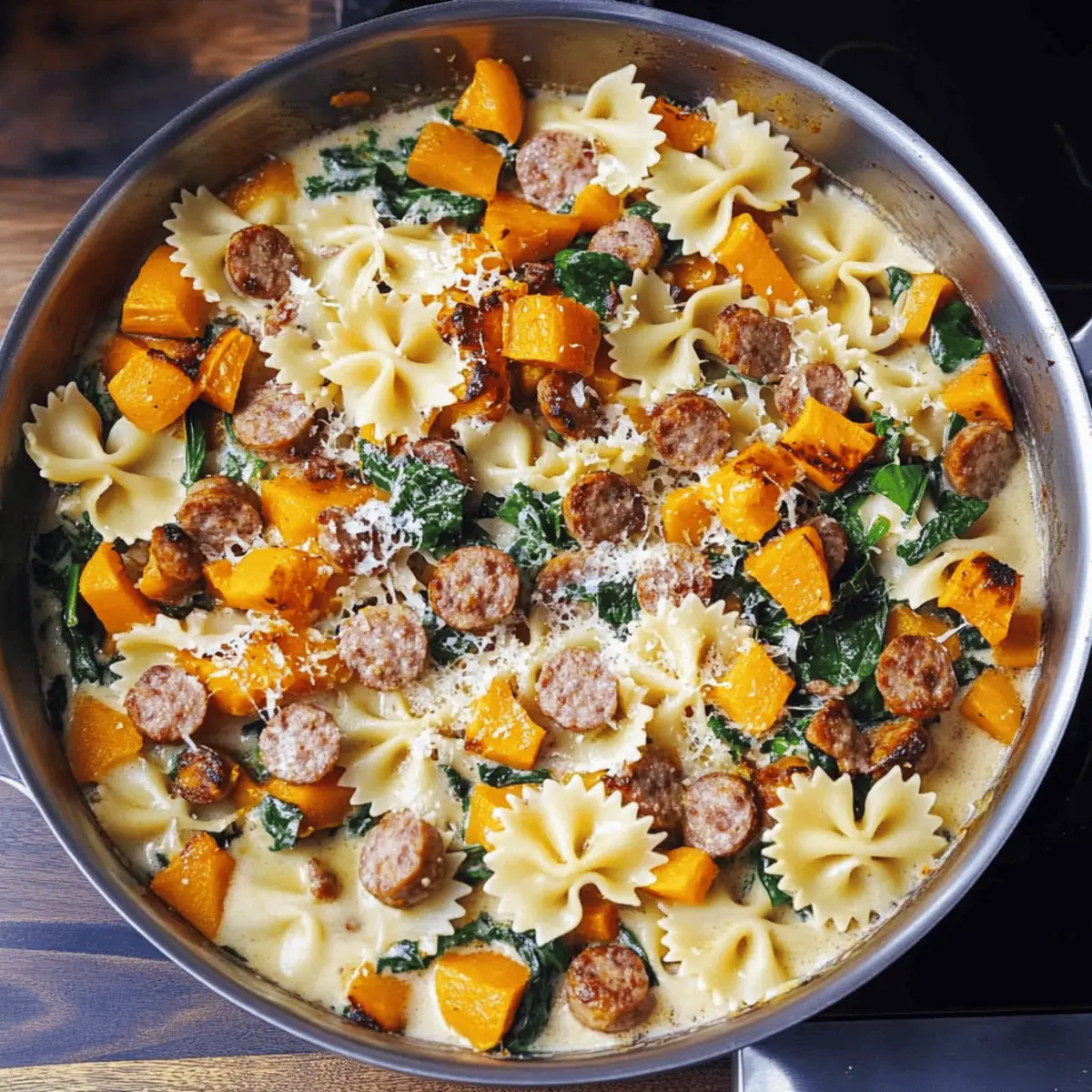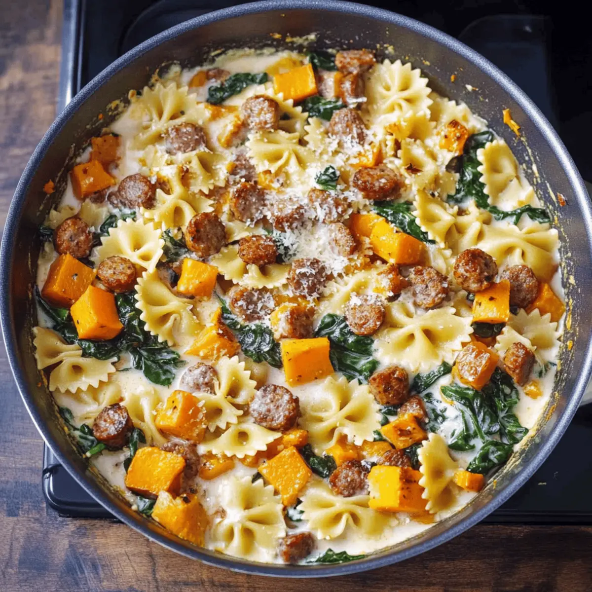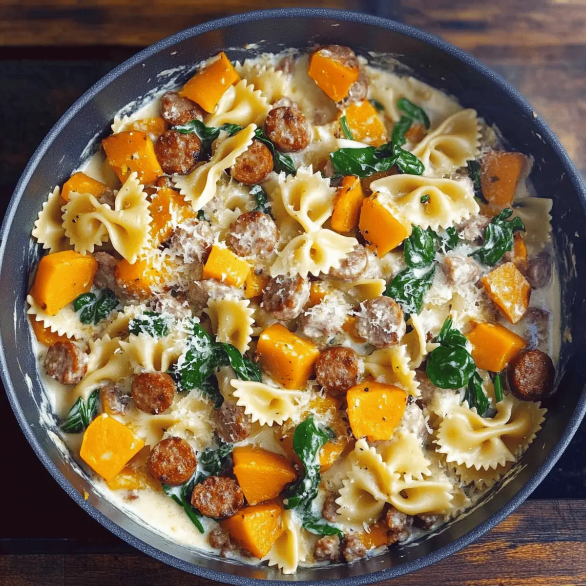 Creamy Roasted Butternut Squash Pasta with Sausage and Spinach Bliss