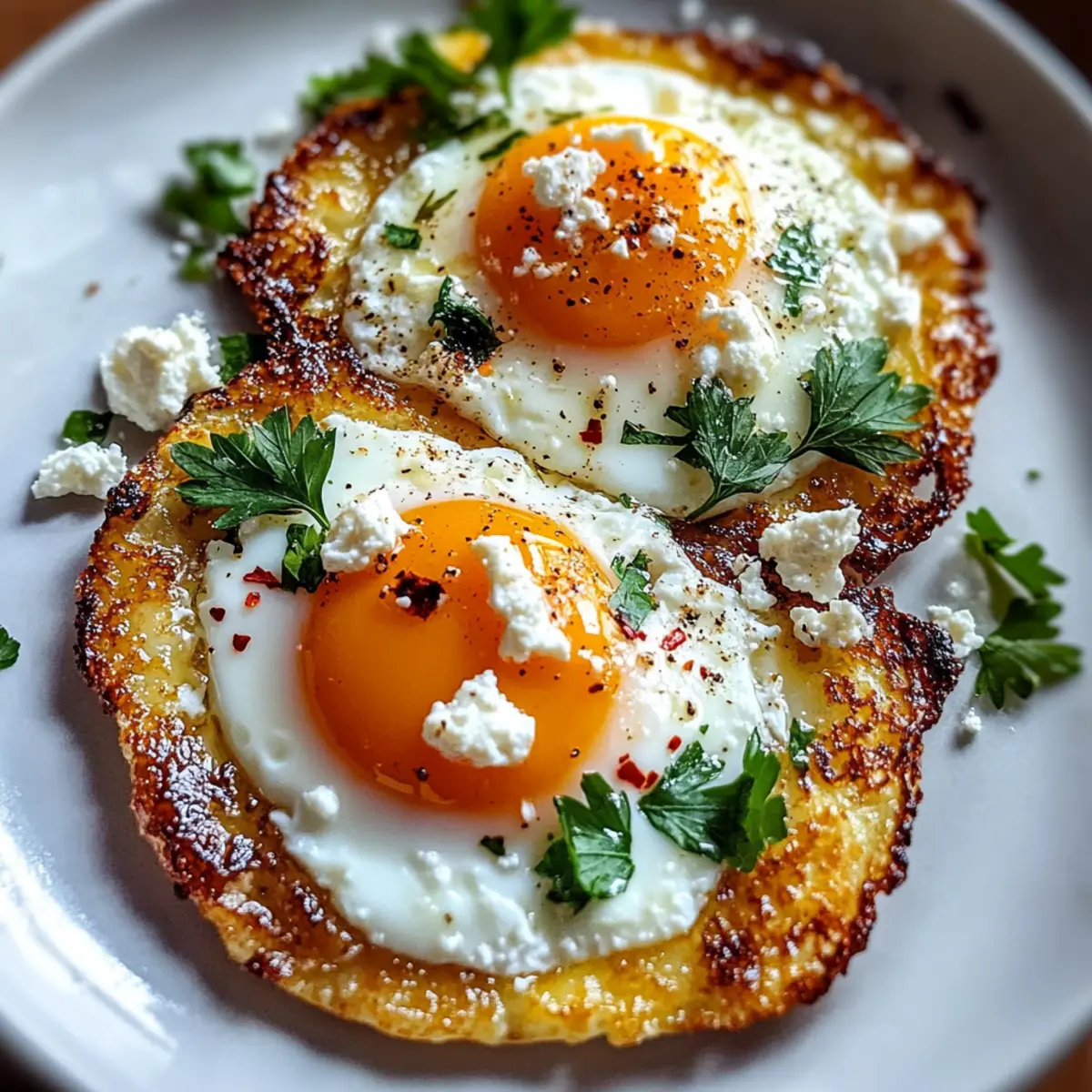 Carefully slide the eggs and crispy feta onto a plate, taking care to keep everything intact. Serve immediately while hot, allowing each bite to reveal the crunchy feta and oh-so-smooth egg yolks. Enjoy your homemade creation as a delightful start to your day!