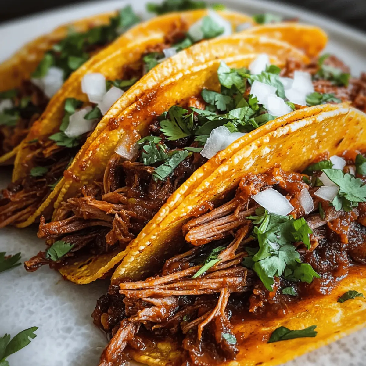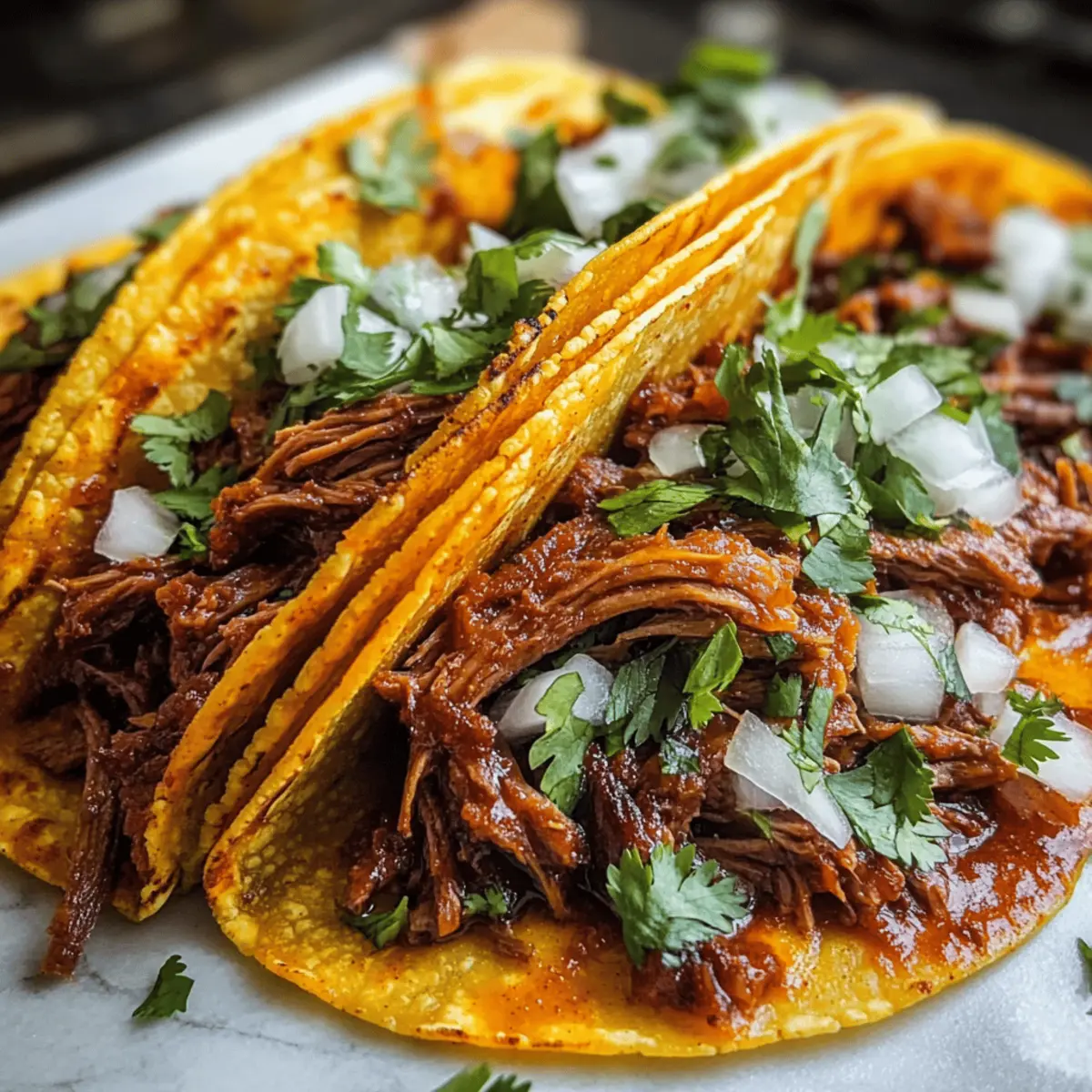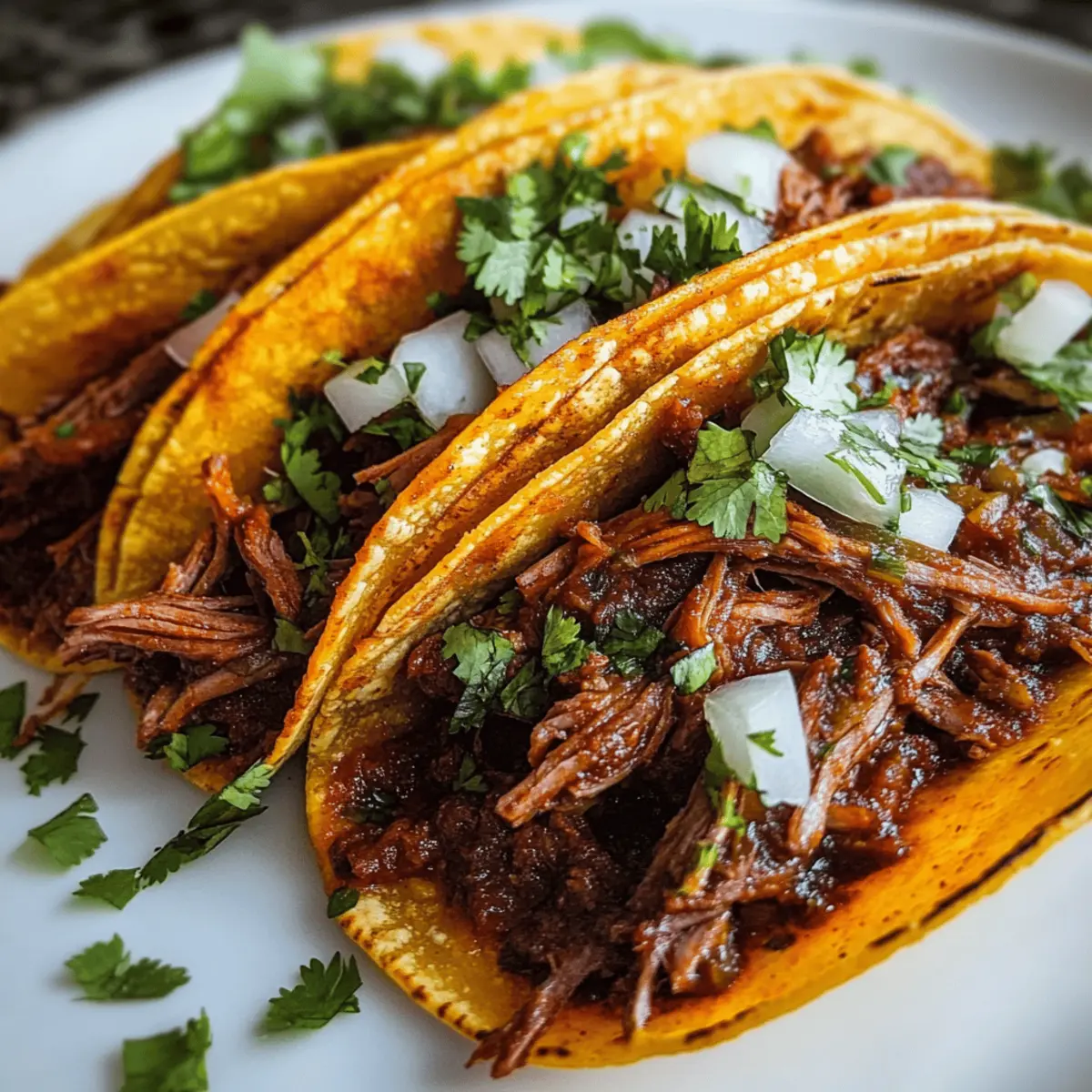 Pork or Chicken: Substitute beef with pork shoulder or chicken thighs for a lighter texture and unique taste. Each protein brings its own flair, making your tacos just as delightful!