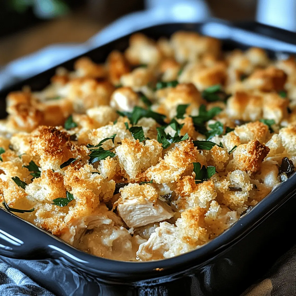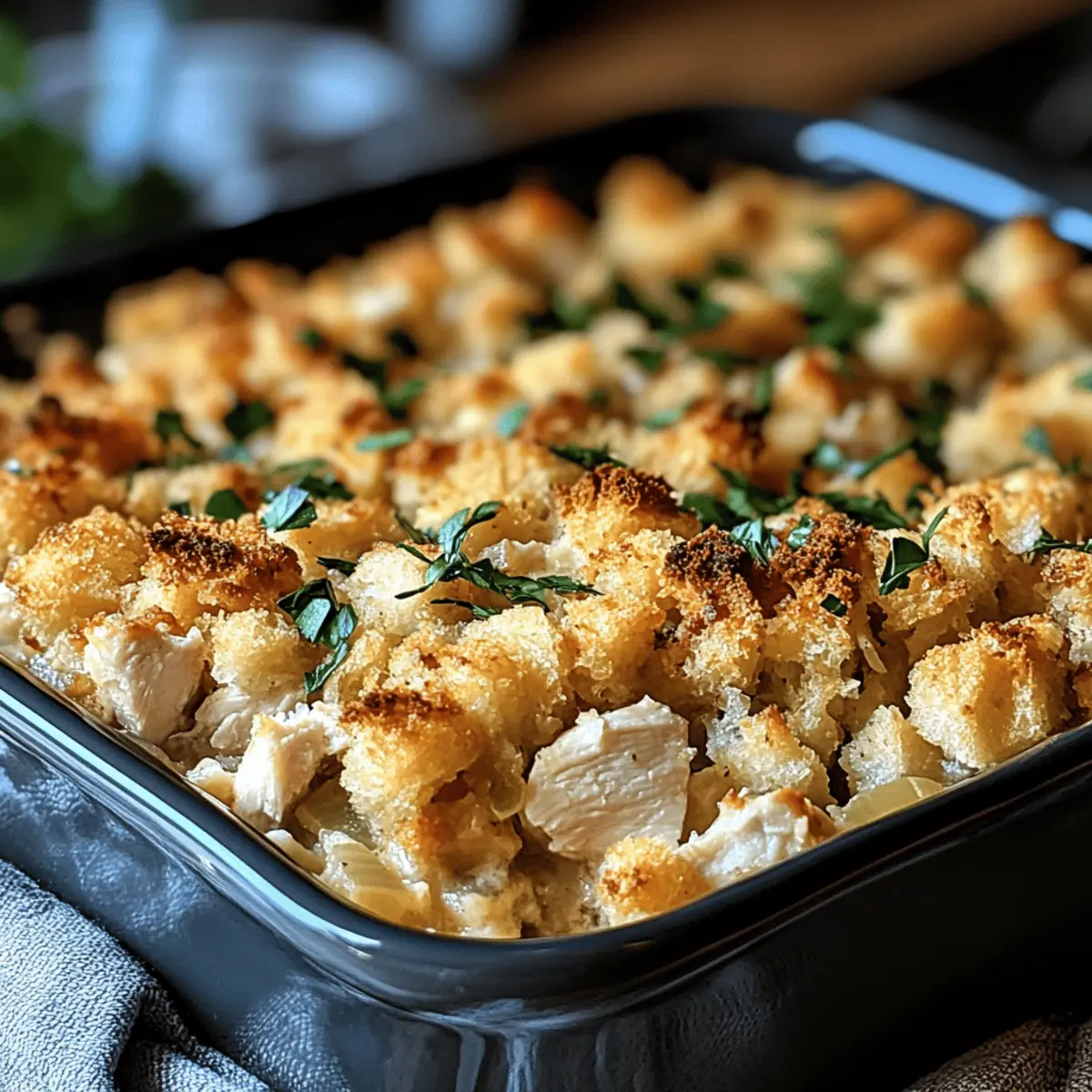 As I rummaged through my pantry, the tantalizing aroma of Southern kitchens flooded my senses—reminding me of family gatherings filled with love and laughter. That’s when the idea hit me: Dolly’s Chicken and Stuffing Casserole. This dish is more than just a meal; it’s a comforting hug on a plate that pairs juicy chicken with a creamy base and a crispy stuffing topping. Not only is this casserole an absolute crowd-pleaser, but it’s also a make-ahead marvel, perfect for busy evenings or potlucks. Whether you opt for the traditional version or make it gluten-free or dairy-free, this recipe ensures that everyone can enjoy a slice of comfort. Curious about how to whip up this delightful dish for your next family gathering? Let’s dig in!