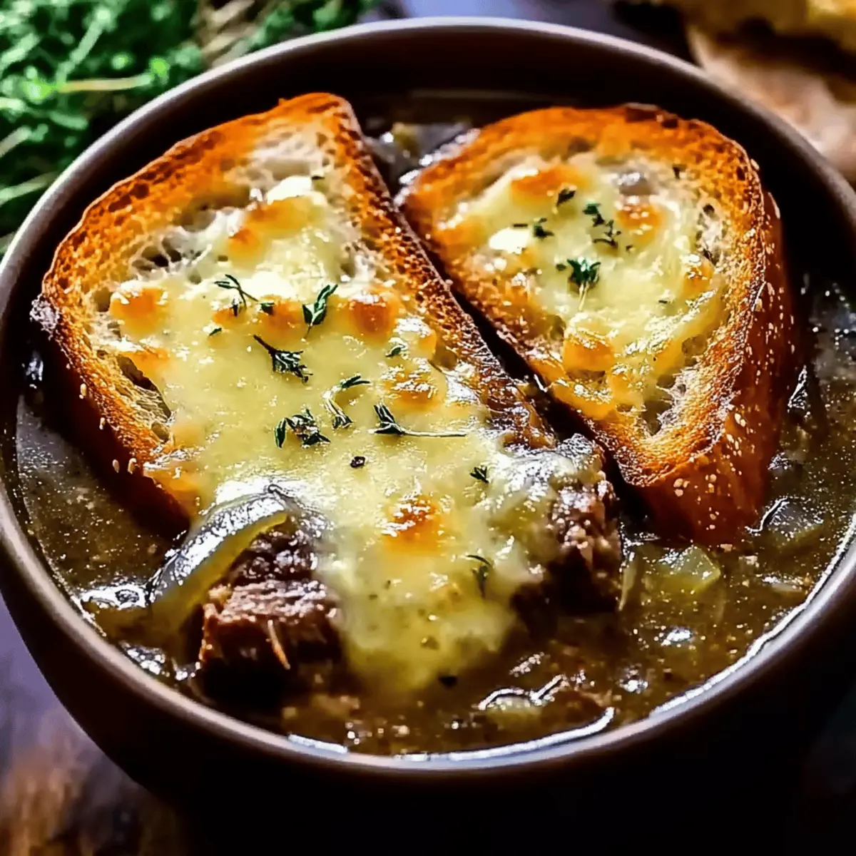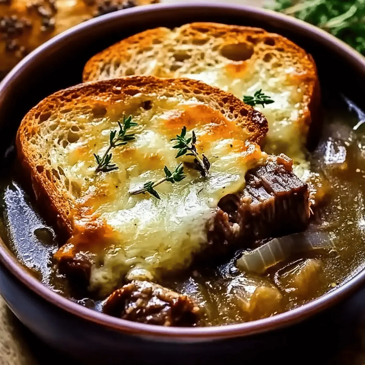 Savory French Onion Short Rib Soup with Gruyère Toast Delight