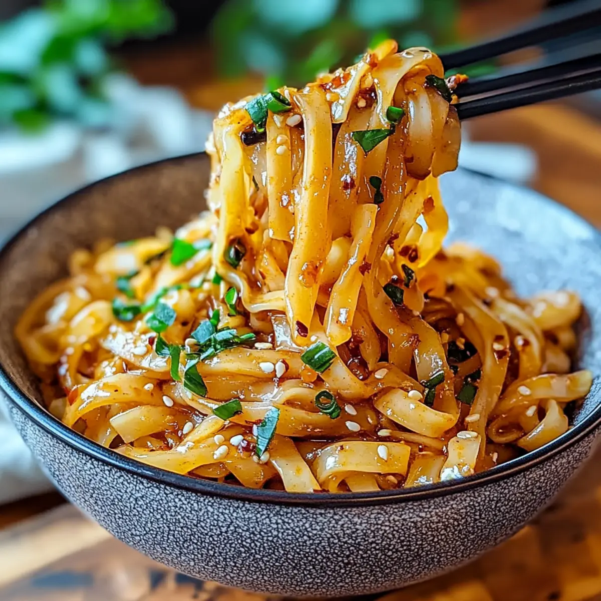 Transfer the Garlic Chili Oil Noodles to a serving plate and finish with a sprinkle of chopped scallions and sesame seeds for a touch of freshness and crunch. These garnishes add a wonderful pop of color and flavor. Serve your creation immediately for the best taste experience, and enjoy the delightful kick in every slurp!