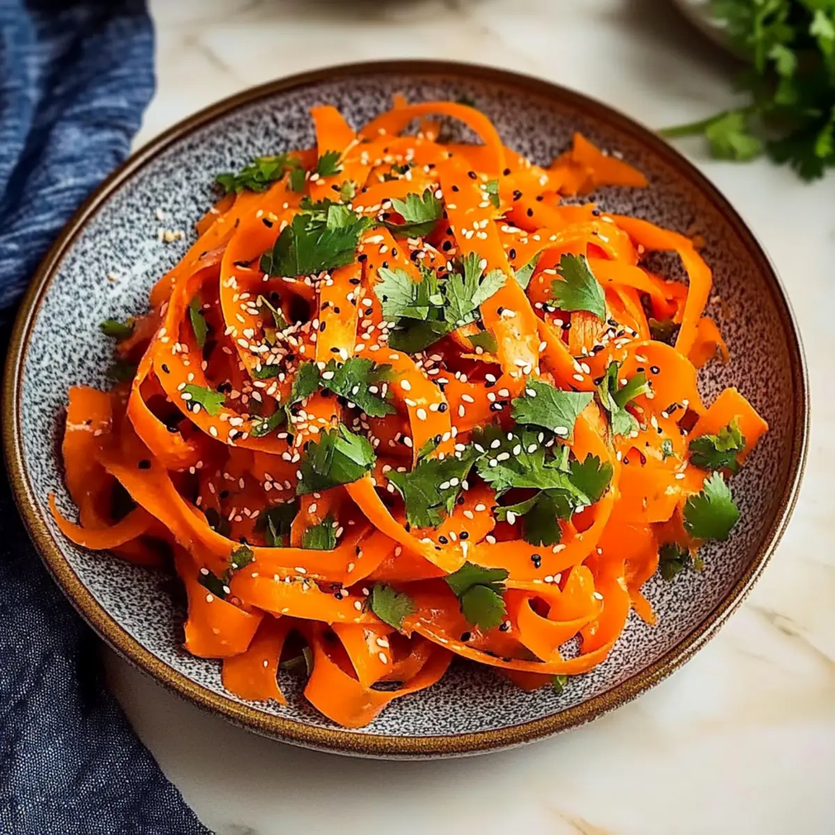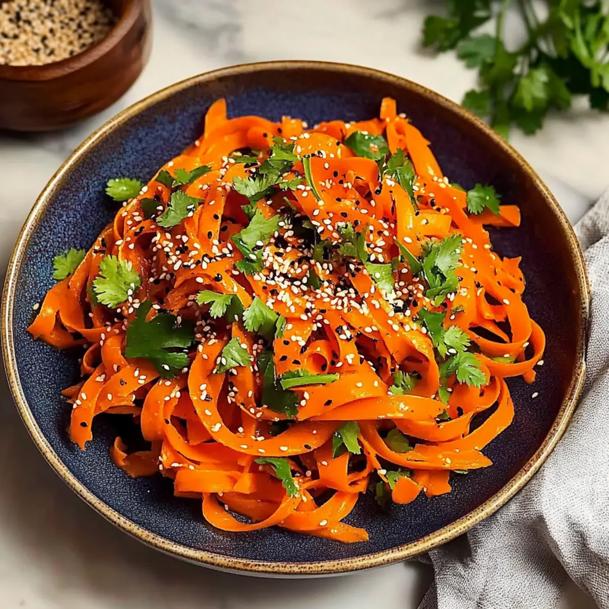 Vibrant Flavors: The zesty Asian dressing, with hints of ginger and garlic, elevates the simple carrot ribbons to a whole new level.