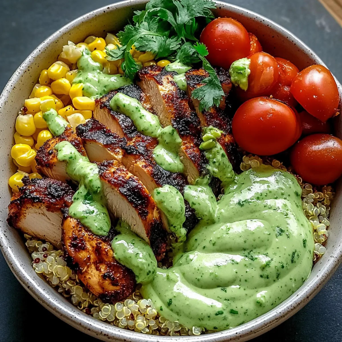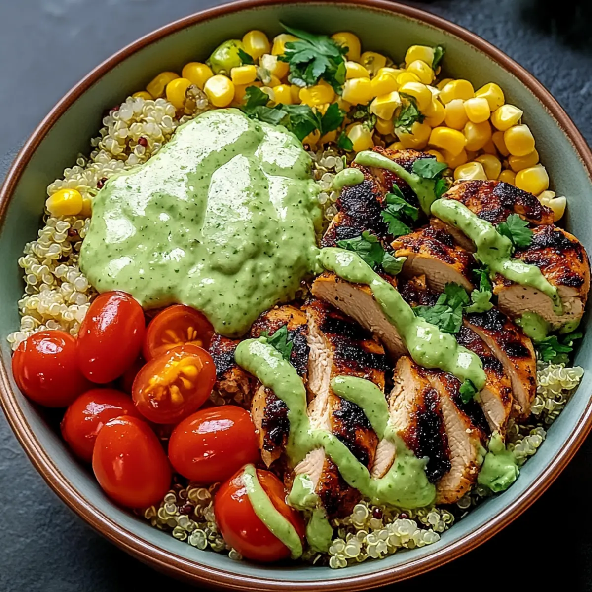 Grilled Chicken Quinoa Bowls with Creamy Avocado Sauce Delight