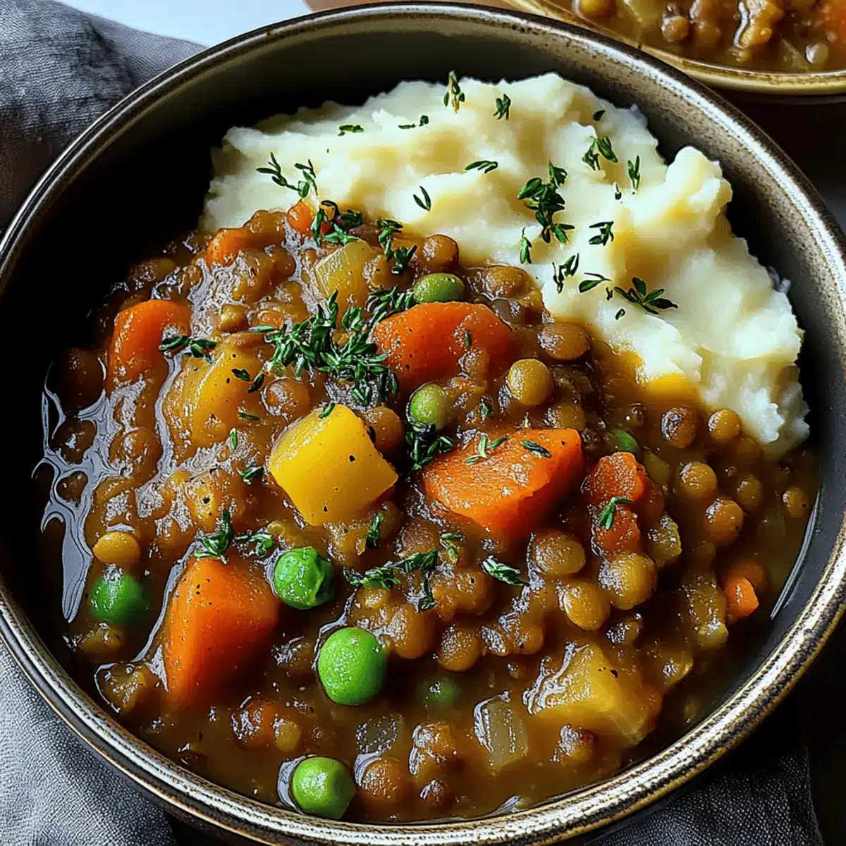 These Hearty Lentil Stew with Creamy Mashed Potatoes are perfect for meal prep enthusiasts! You can make the lentil stew and store it in the refrigerator for up to 5 days, allowing the flavors to meld beautifully. Simply simmer the stew as directed, cool it down, and transfer it to an airtight container. For the creamy mashed potatoes, prepare them fully and keep them in the fridge for up to 3 days; just reheat them with a splash of plant-based milk before serving to restore their creaminess. When you’re ready to enjoy your meal, simply reheat the stew on the stove over low heat, stirring occasionally, and serve it over the warm mashed potatoes, delivering equally delicious results with minimal effort.