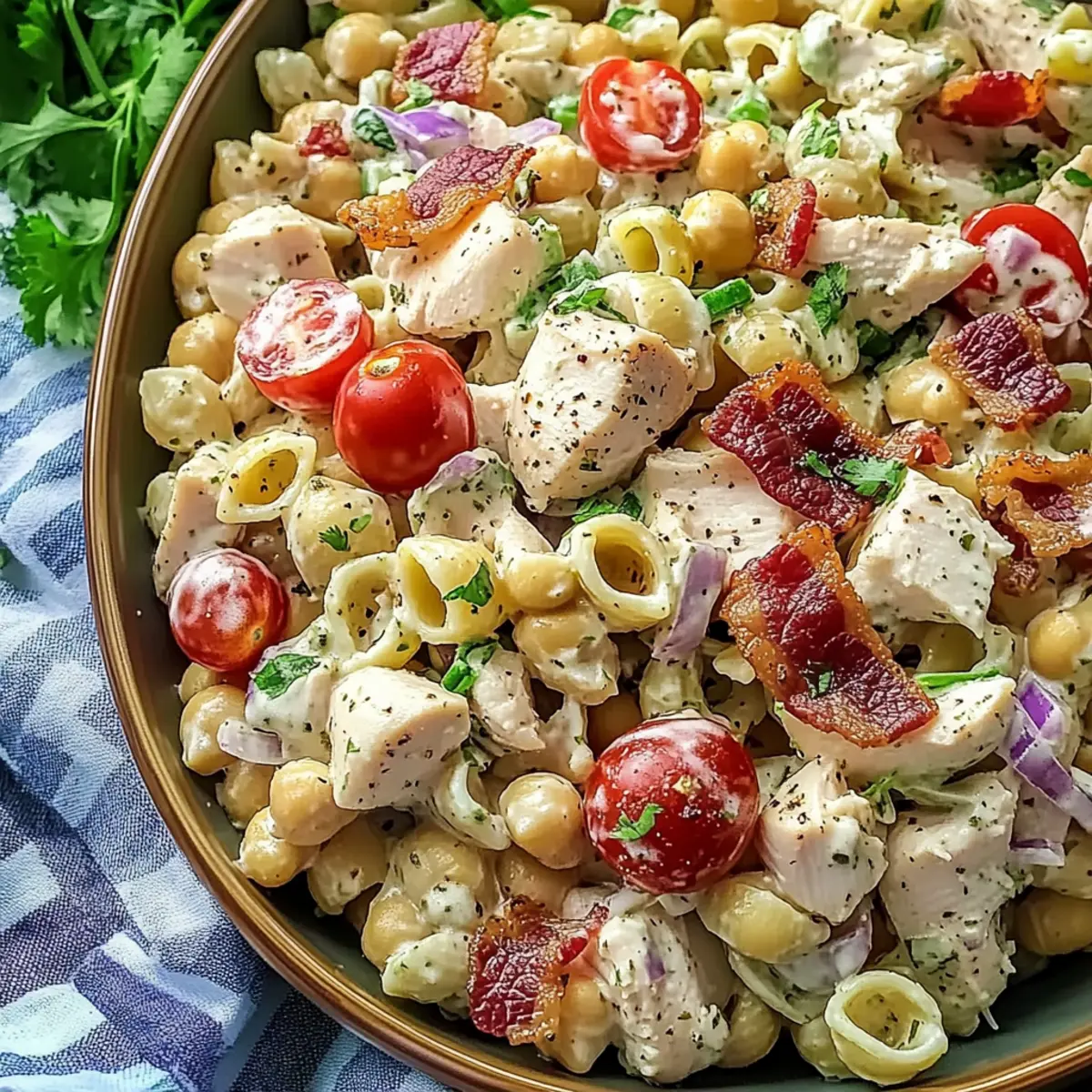 As I tossed together ingredients for today’s recipe, the distinct aroma of crispy bacon mingling with zesty ranch dressing took me back to the sun-drenched summer picnics of my childhood. Introducing my High Protein Bacon Ranch Pasta Salad: a flavor-packed dish that promises to elevate your meal prep game and brings joy to any gathering. With a hearty blend of chickpea pasta, tender chicken, and smoky bacon, each serving is loaded with over 30 grams of protein—perfect for those of us looking to enjoy delicious food without the heaviness of traditional pasta salads. This vibrant salad is not only quick to prepare but also a surefire crowd-pleaser, making it an excellent choice for both busy weekdays and festive summer BBQs. Curious about how to create this delightful dish? Let’s dive into the recipe!