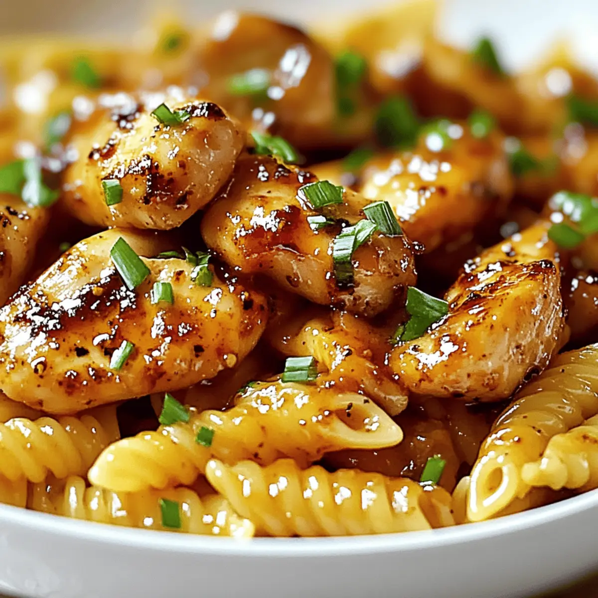 Once your sauce has reached the desired consistency, add the drained pasta directly into the skillet. Sprinkle the chili flakes over the top, then toss everything together to evenly coat the pasta in the sweet and spicy sauce. Cook for another 1-2 minutes, ensuring the pasta is warmed through and thoroughly combined with the chicken and sauce.