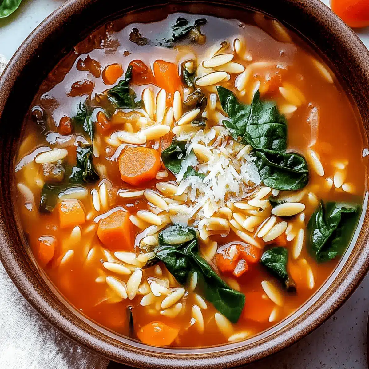As the wind howls outside and the chill settles in, there’s nothing quite like diving into a warm bowl of comfort. My Quick Italian Orzo Spinach Soup not only warms me up but also nourishes my soul with its hearty orzo and vibrant veggies swimming in a flavorful broth. What makes this dish truly special is its incredible adaptability; you can swap in whatever vegetables you have on hand, making it your own every time. Plus, with a cooking time that’s faster than ordering takeout, it’s the perfect solution for those busy weeknights when you crave something hearty without the hassle. Are you ready to embrace the comforting embrace of this Italian classic? Let’s dive in!