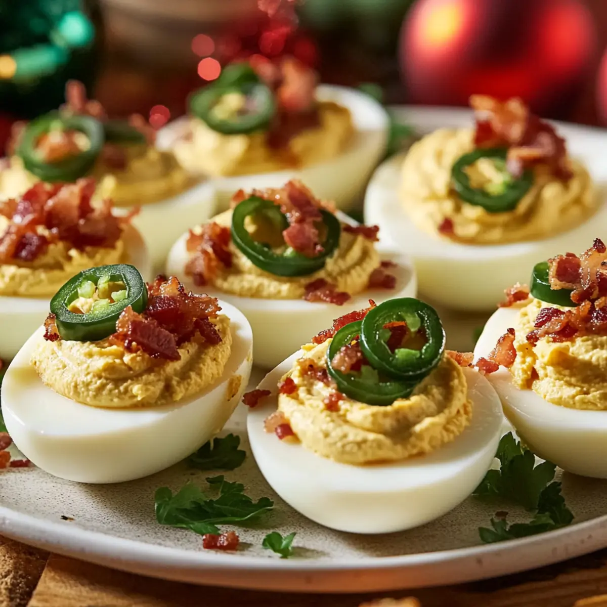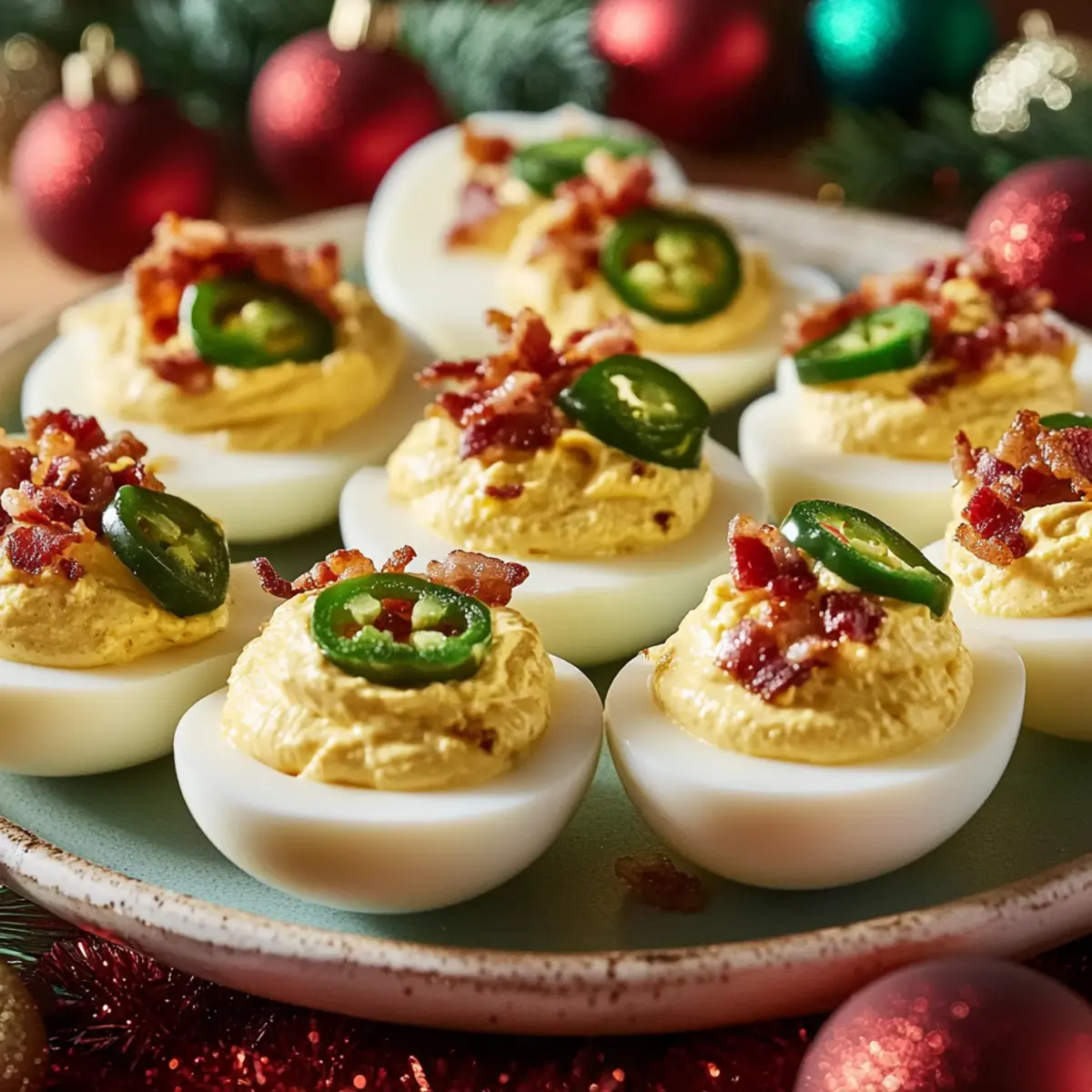 Zesty Jalapeño-Cheddar Christmas Deviled Eggs for Festive Joy