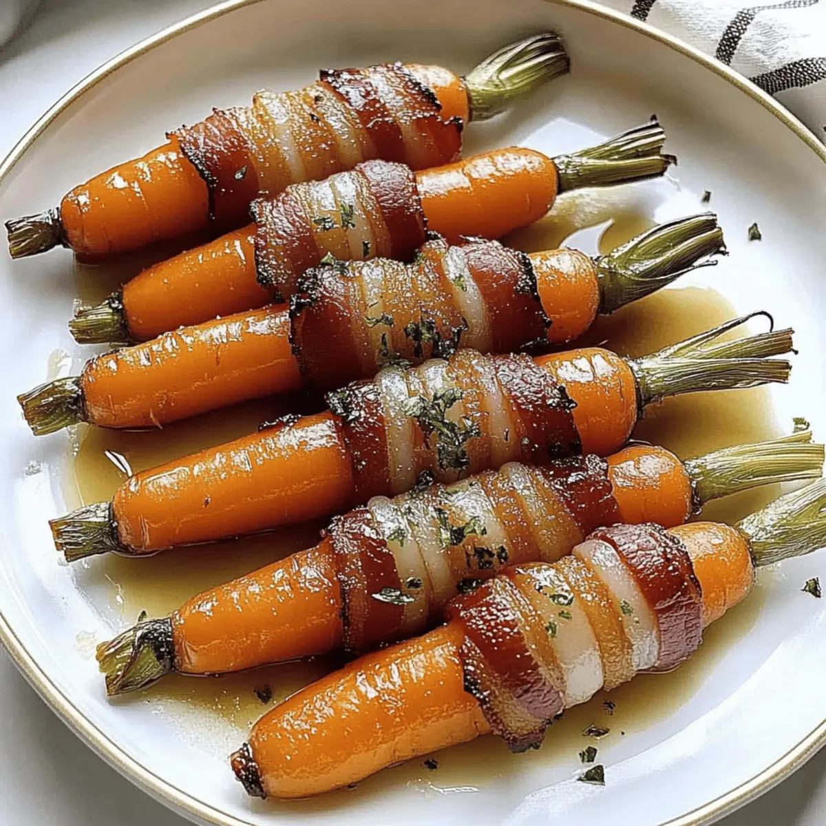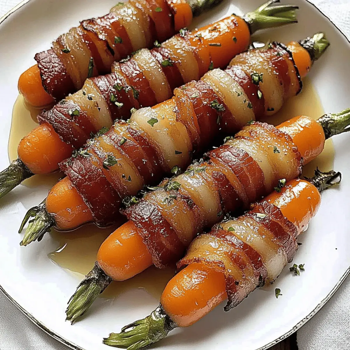 These Maple Bacon Carrots are a fantastic choice for meal prep! You can prepare the bacon-wrapped carrots up to 24 hours in advance by wrapping each carrot and placing them on a baking sheet before covering them tightly and refrigerating. Be sure to add the maple syrup just before baking to maintain that perfect caramelization. When you’re ready to serve, simply pop them in a preheated oven and bake as directed (25 minutes initially, followed by 8-10 minutes for glazing). This allows you to enjoy these delightful flavors without the last-minute rush, giving you more time to connect with loved ones at the dinner table!