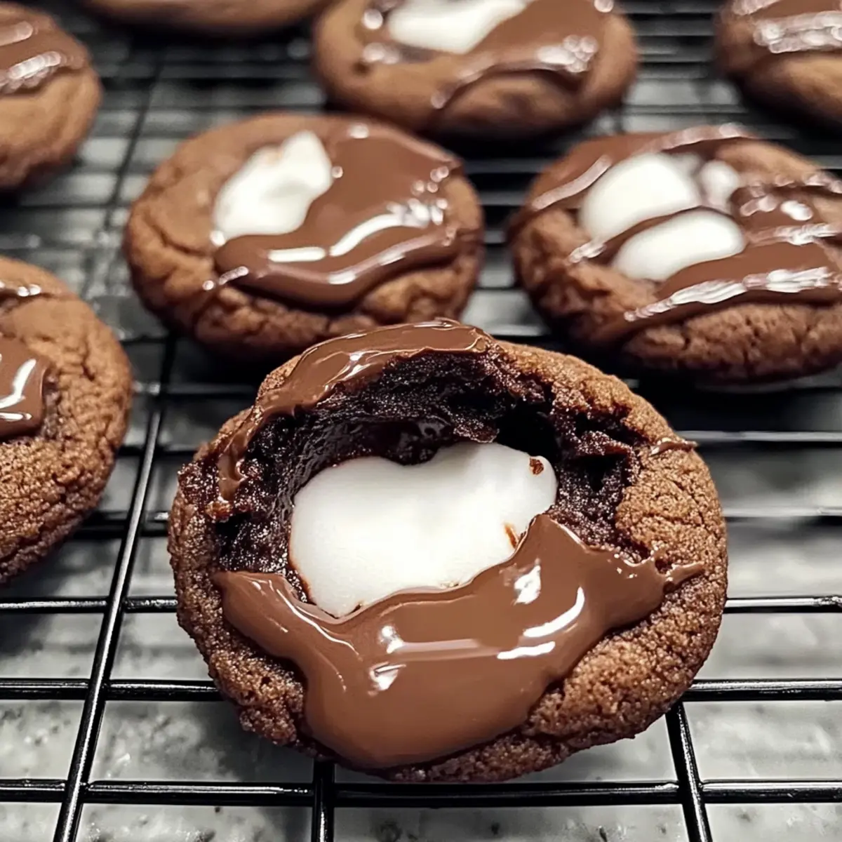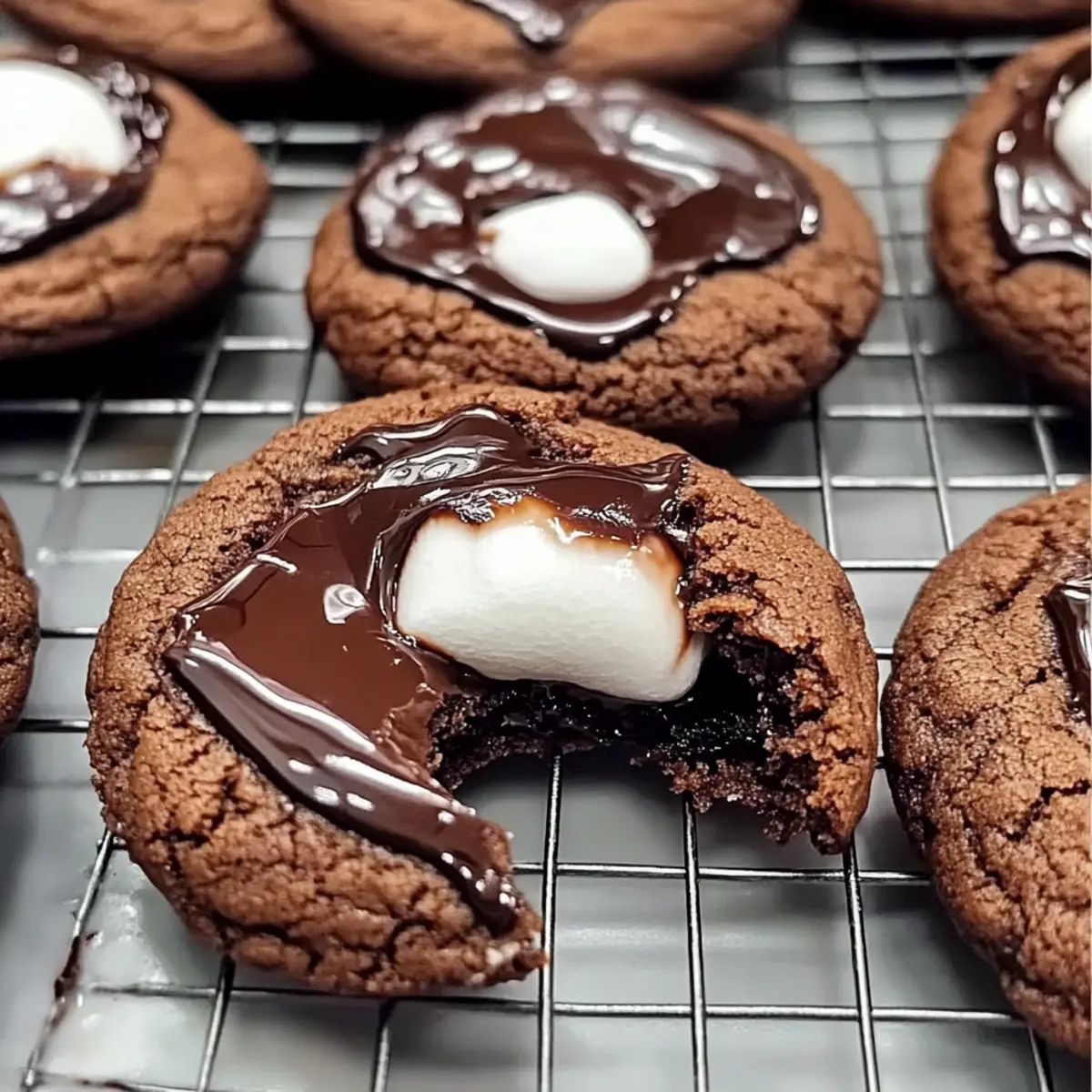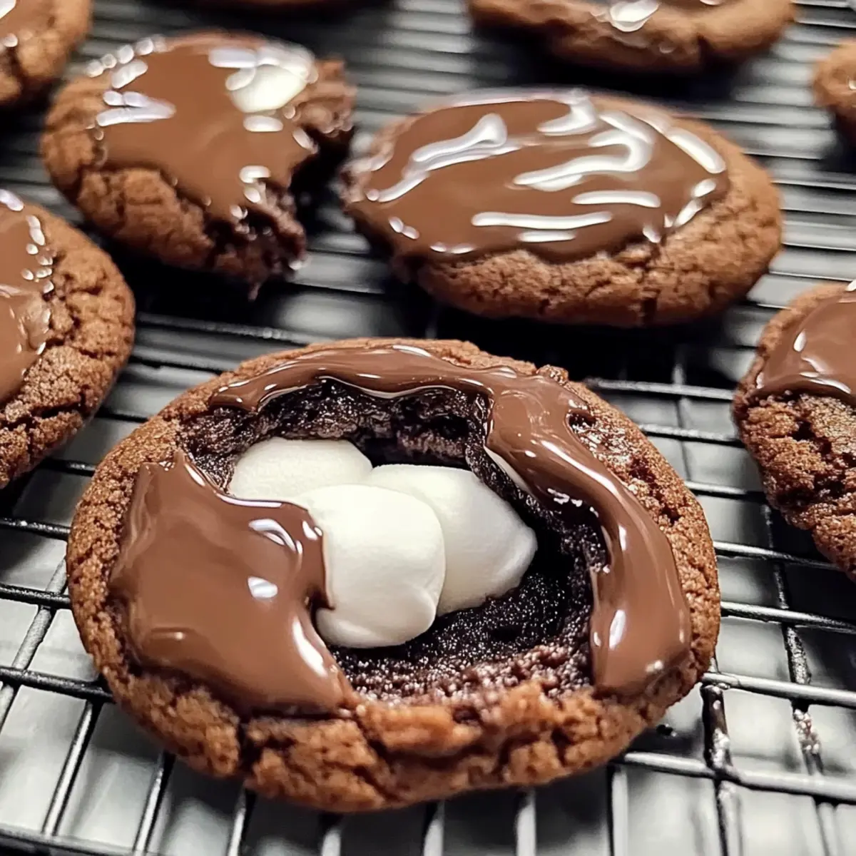 Reheating: To enjoy the cookies warm, microwave them for 10-15 seconds before serving; this revitalizes the gooey marshmallow center and melty chocolate drizzle.