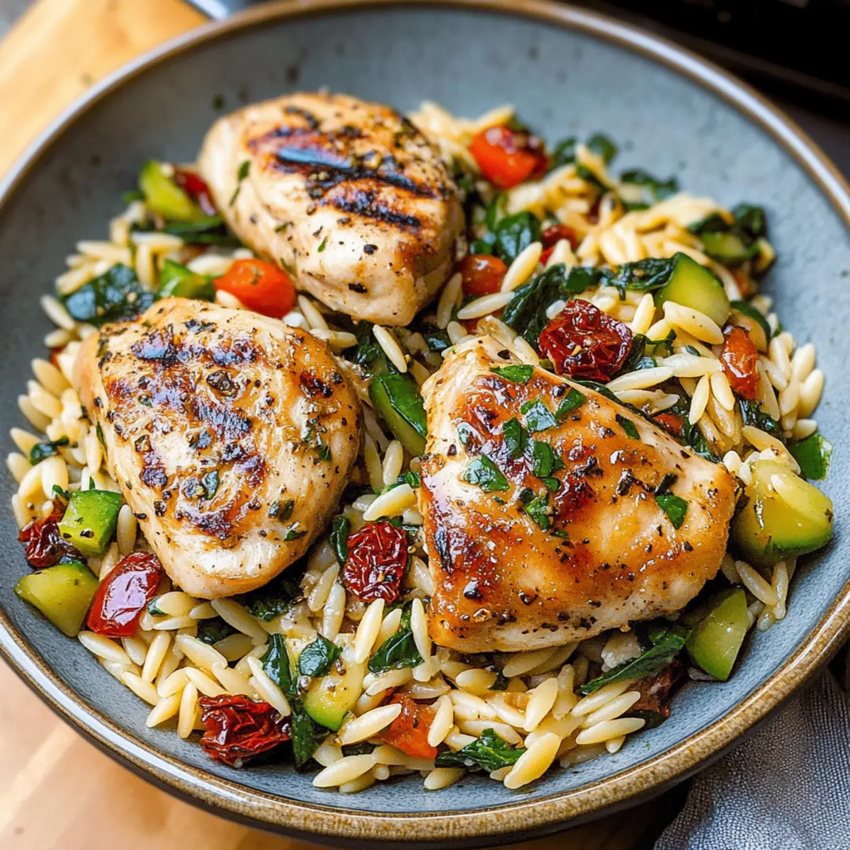 No worries! To rescue overcooked chicken, you can chop it into smaller pieces and mix it with a little chicken broth or a splash of olive oil to bring back some moisture. Add it back to the skillet with the orzo and vegetables for a quick warm-up, or serve it over the dish, allowing the flavors to meld together.