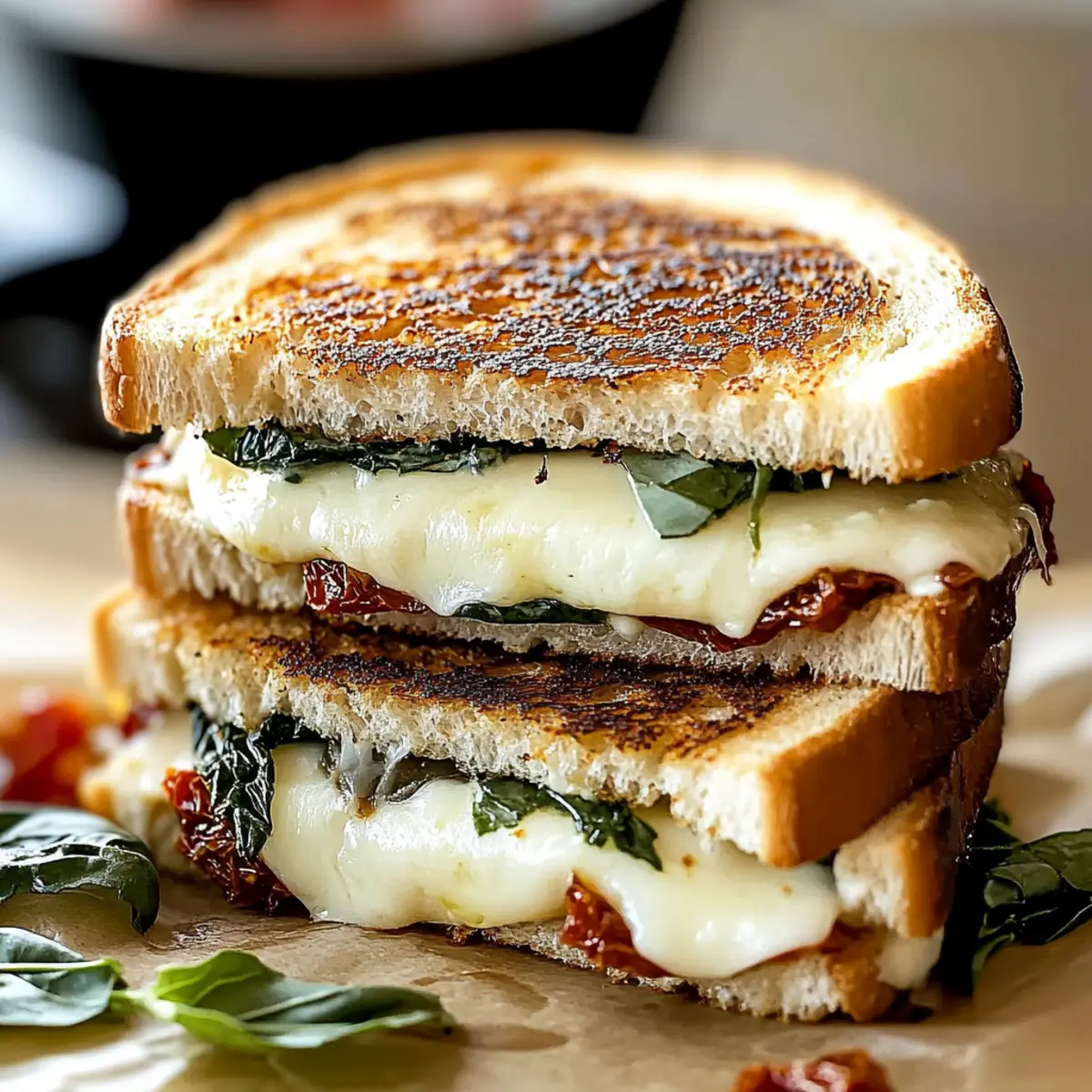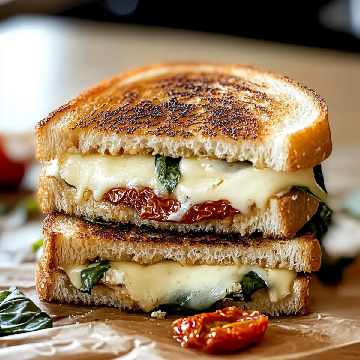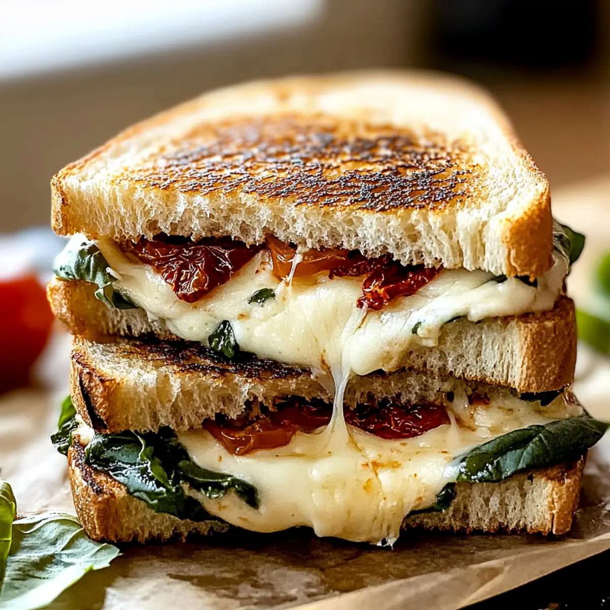 These Mediterranean Grilled Cheese Sandwiches are perfect for meal prep, allowing busy home cooks to enjoy this delightful dish with minimal effort. You can slice the sourdough bread and prepare the cheese, sun-dried tomatoes, and basil up to 24 hours ahead. Simply store the bread and fillings in airtight containers in the refrigerator to maintain freshness. When you’re ready to serve, layer your ingredients and cook them as instructed. For those who like to be extra efficient, consider grilling multiple sandwiches at once, ensuring a quick meal that still delivers all the melty, gooey goodness you crave. Enjoy some quality time with family as you savor every delicious bite!