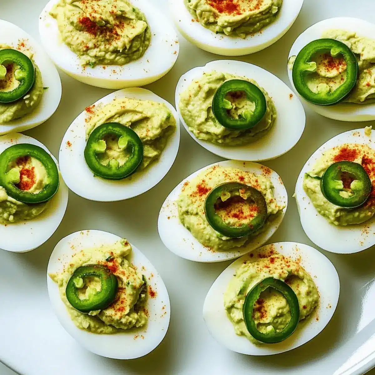 For an appealing finish, sprinkle smoked paprika over the filled eggs to add a touch of color and smoky flavor. Top each egg with a slice of jalapeño and a few cilantro leaves as a fresh garnish. Serve lime wedges alongside for guests to squeeze a bit of extra zest just before enjoying these spicy Mexican deviled eggs.