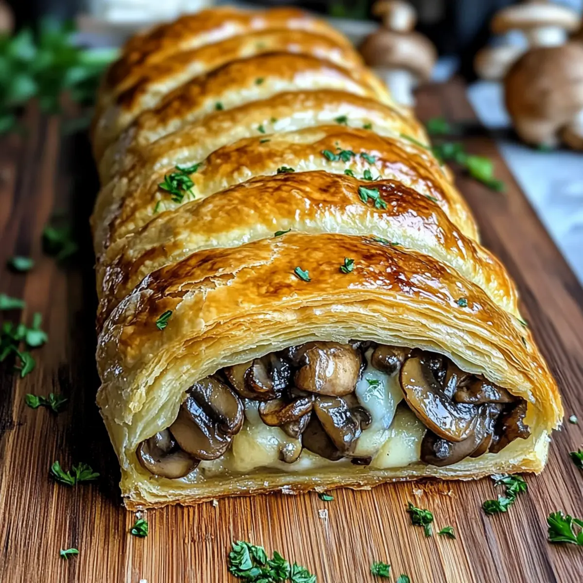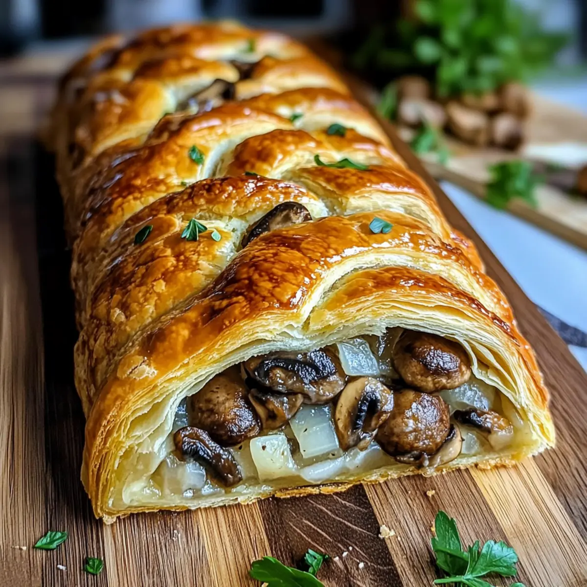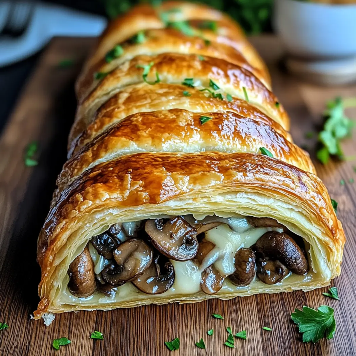 Slice the Mushroom & Gruyère Puff Pastry Braid into portions and arrange them on a serving platter. Consider garnishing with chopped fresh parsley for a pop of color. This inviting dish pairs wonderfully with a light salad or a tangy dipping sauce. Dive in and celebrate your culinary triumph!