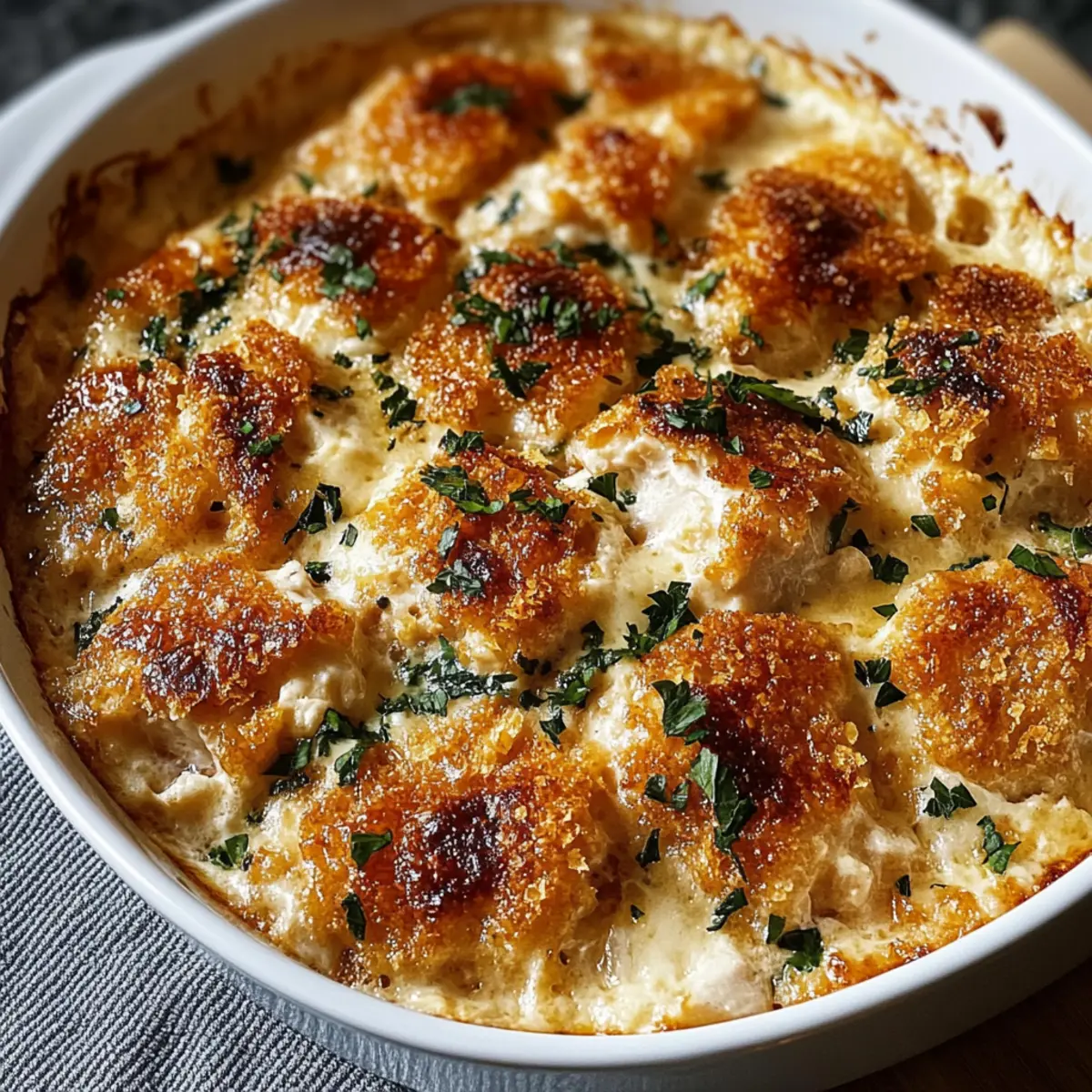Comforting Layers: Each bite offers a creamy, rich experience with tender chicken wrapped in a luscious sauce.