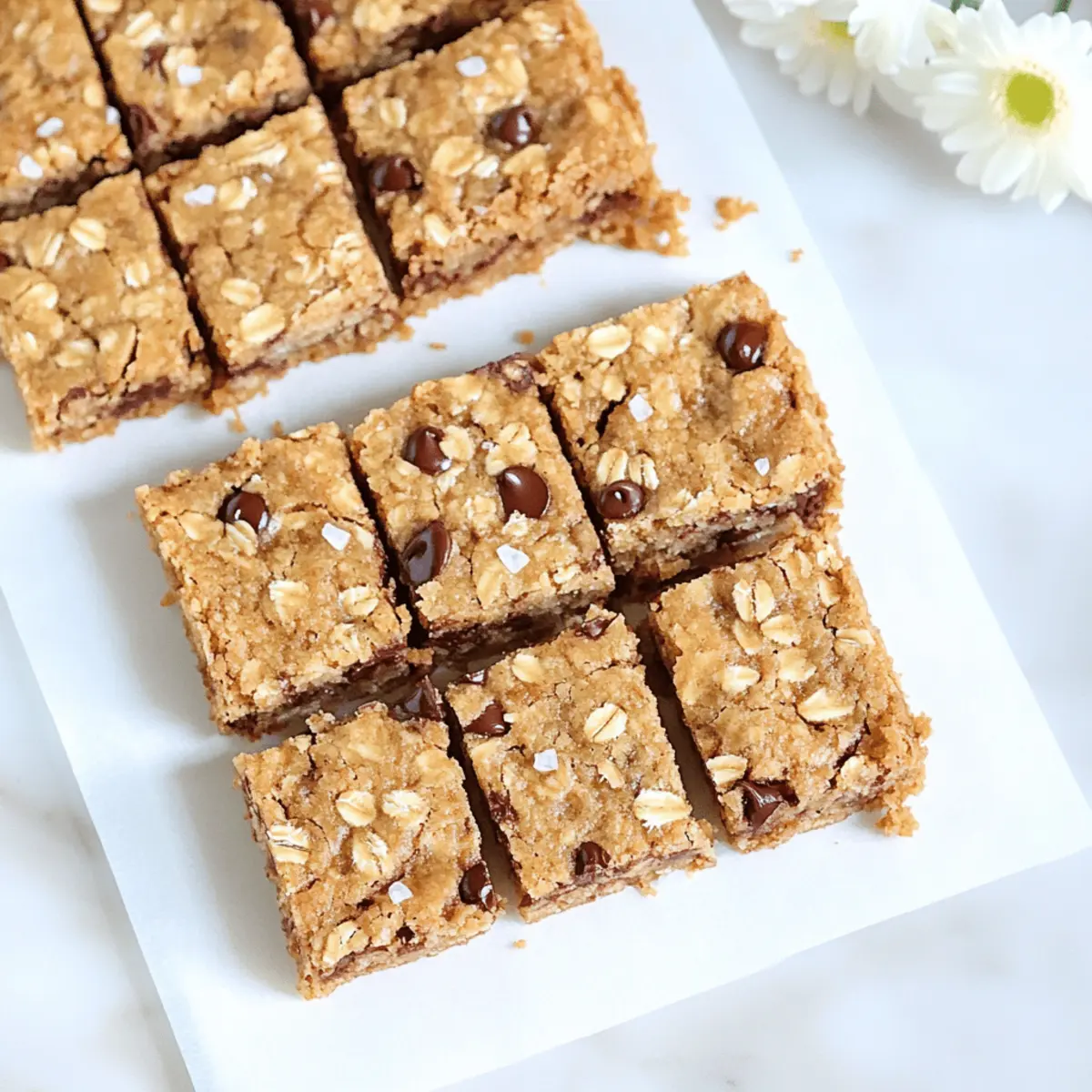 These Oatmeal Chocolate Chip Bars are fantastic for those busy days when you need a quick snack or dessert! You can prepare the dry ingredients—old-fashioned oats, flour, sugars, baking soda, salt, and cinnamon—up to 3 days in advance. Simply combine them in an airtight container and store it in your pantry. When you’re ready to bake, just mix in the wet ingredients (melted butter, eggs, and vanilla), fold in the chocolate chips, and bake as directed. To maintain their freshness, let the bars cool completely before storing in an airtight container for up to 1 week or freeze for up to 3 months. This way, you always have delicious Oatmeal Chocolate Chip Bars on hand with minimal effort!
