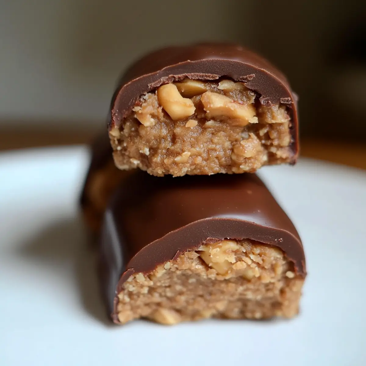 Refrigerate the coated peanut butter protein bars for 10-15 minutes, or until the chocolate has completely hardened and feels firm to the touch. This cooling will help the chocolate set properly, creating a delightful texture. You can check after 10 minutes to see how it’s firming up.