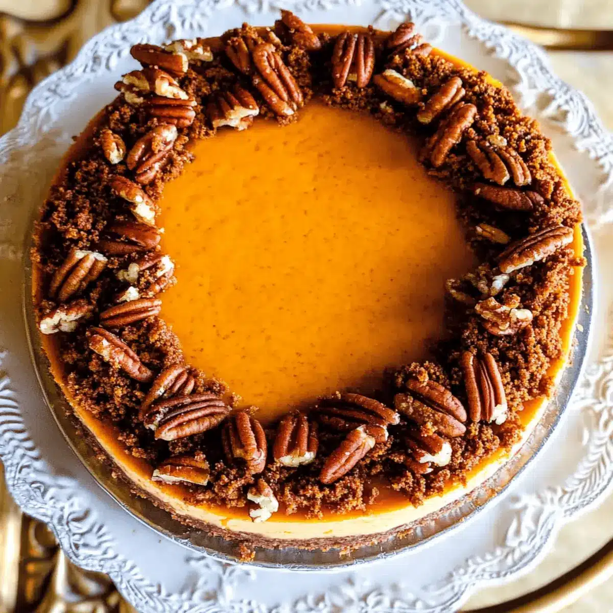This Pumpkin Cheesecake with Candied Pecans is a delightful blend of flavors that captures the essence of fall, enticing you to taste it!