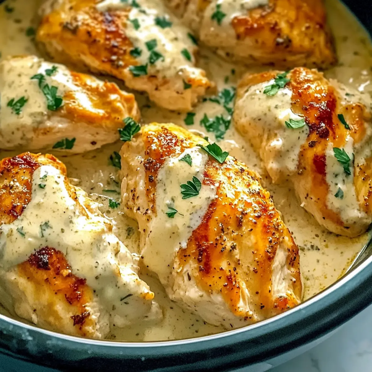 Place the seared chicken breasts into the crock pot, ensuring they are well-coated with the creamy ranch sauce you prepared. Nestling the chicken in the sauce helps it absorb all the wonderful flavors while it cooks. This step is crucial for achieving tender, flavorful chicken that will melt in your mouth.