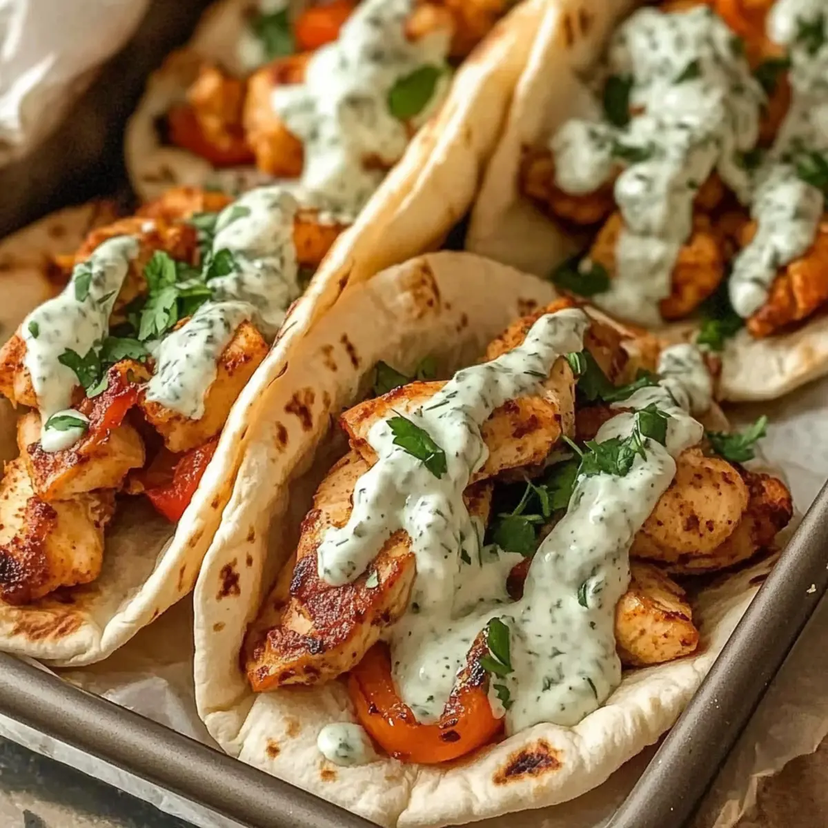 Homemade Tzatziki: This cool, yogurt-based dip is an ideal companion, offering a refreshing option to dip or drizzle onto your chicken pitas. Its creamy texture and fresh herbs make it irresistible.
