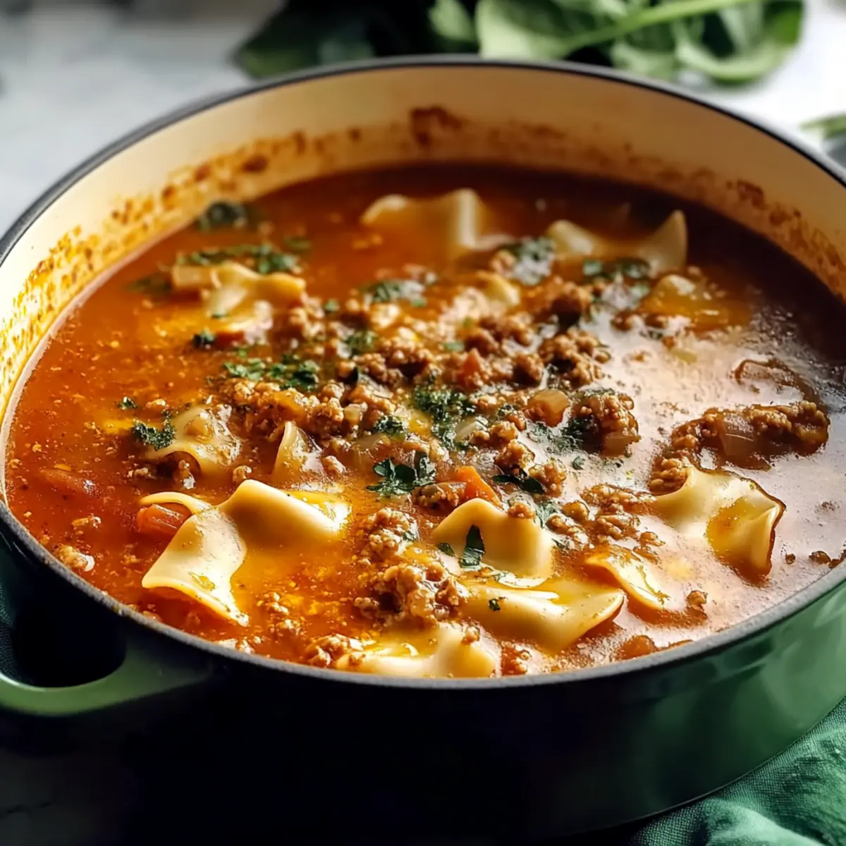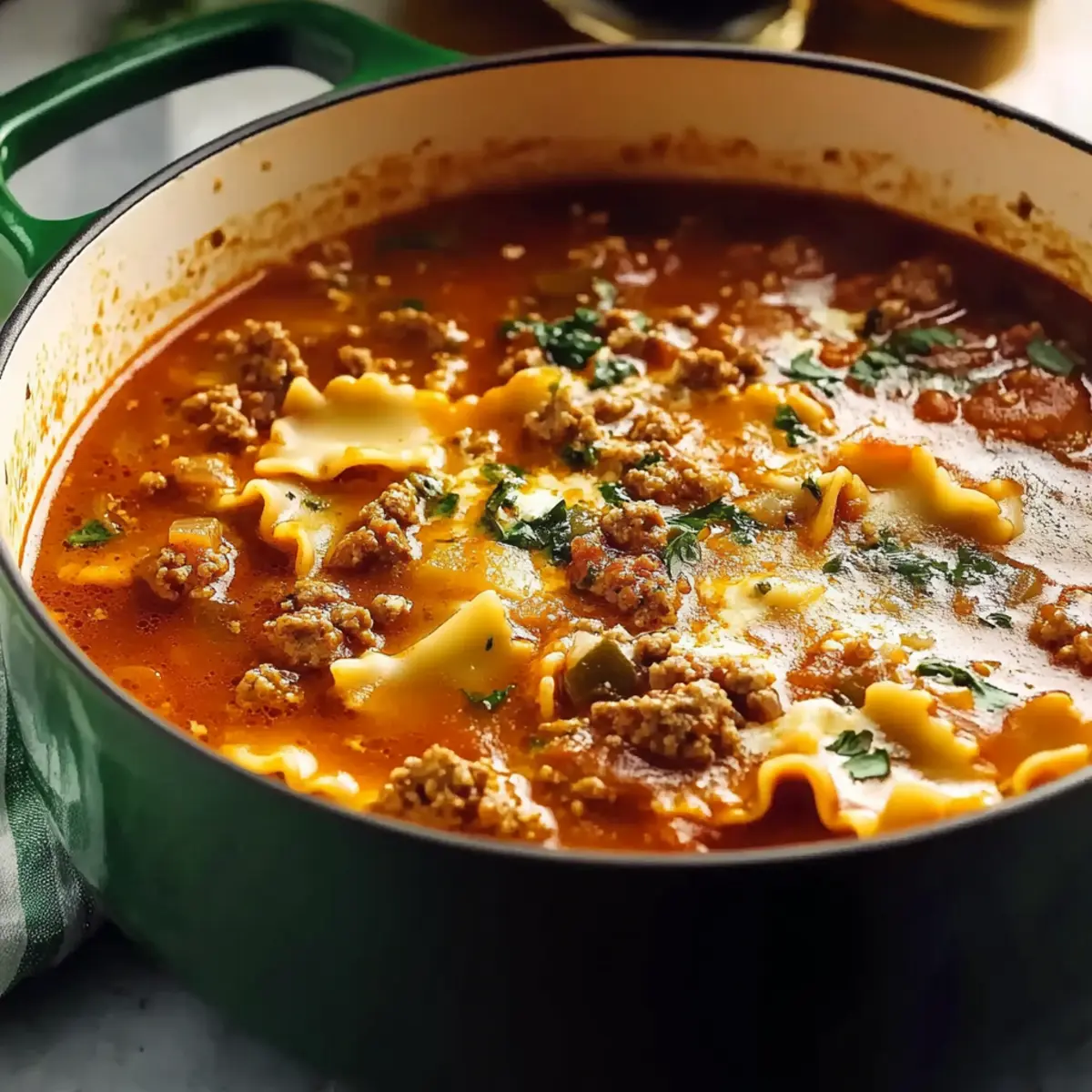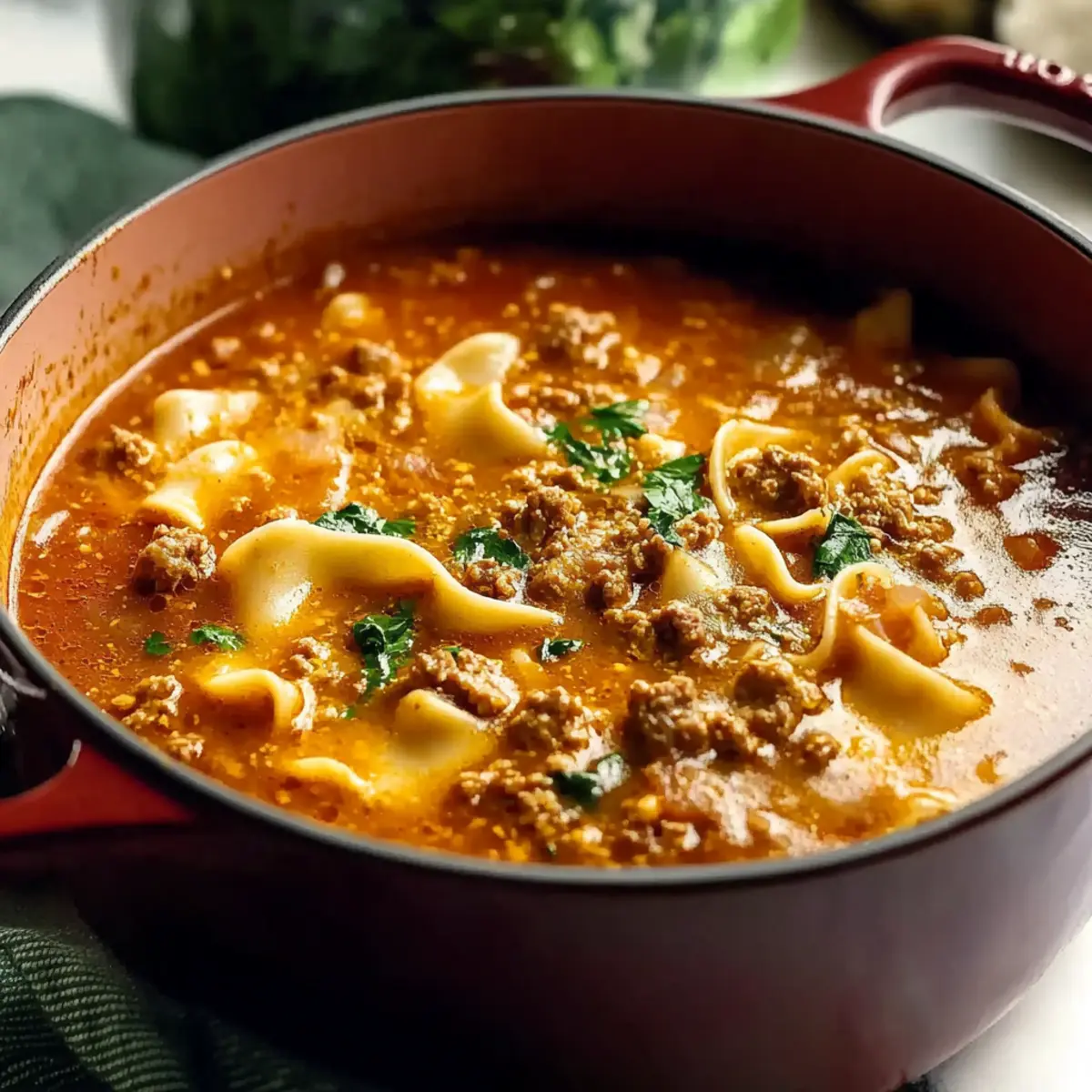 Savory Simple Lasagna Soup with Sausage and Ground Beef