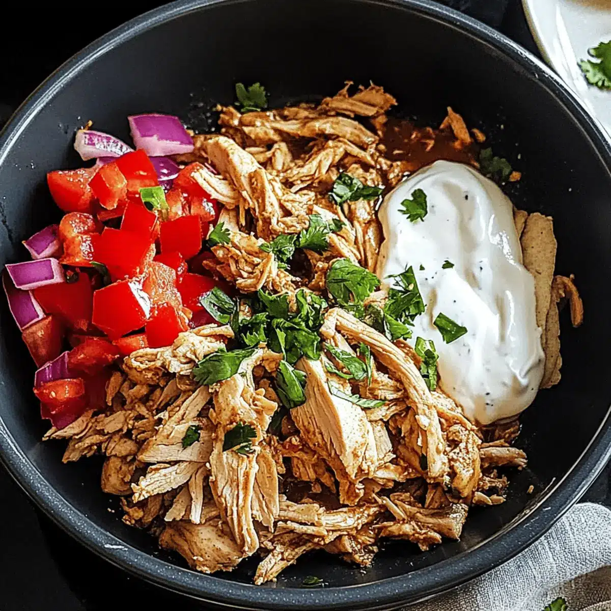 Vegetable Boost: Toss in chopped bell peppers, zucchini, or carrots in the slow cooker alongside the chicken. They’ll absorb the flavorful spices and offer a nutritional boost.