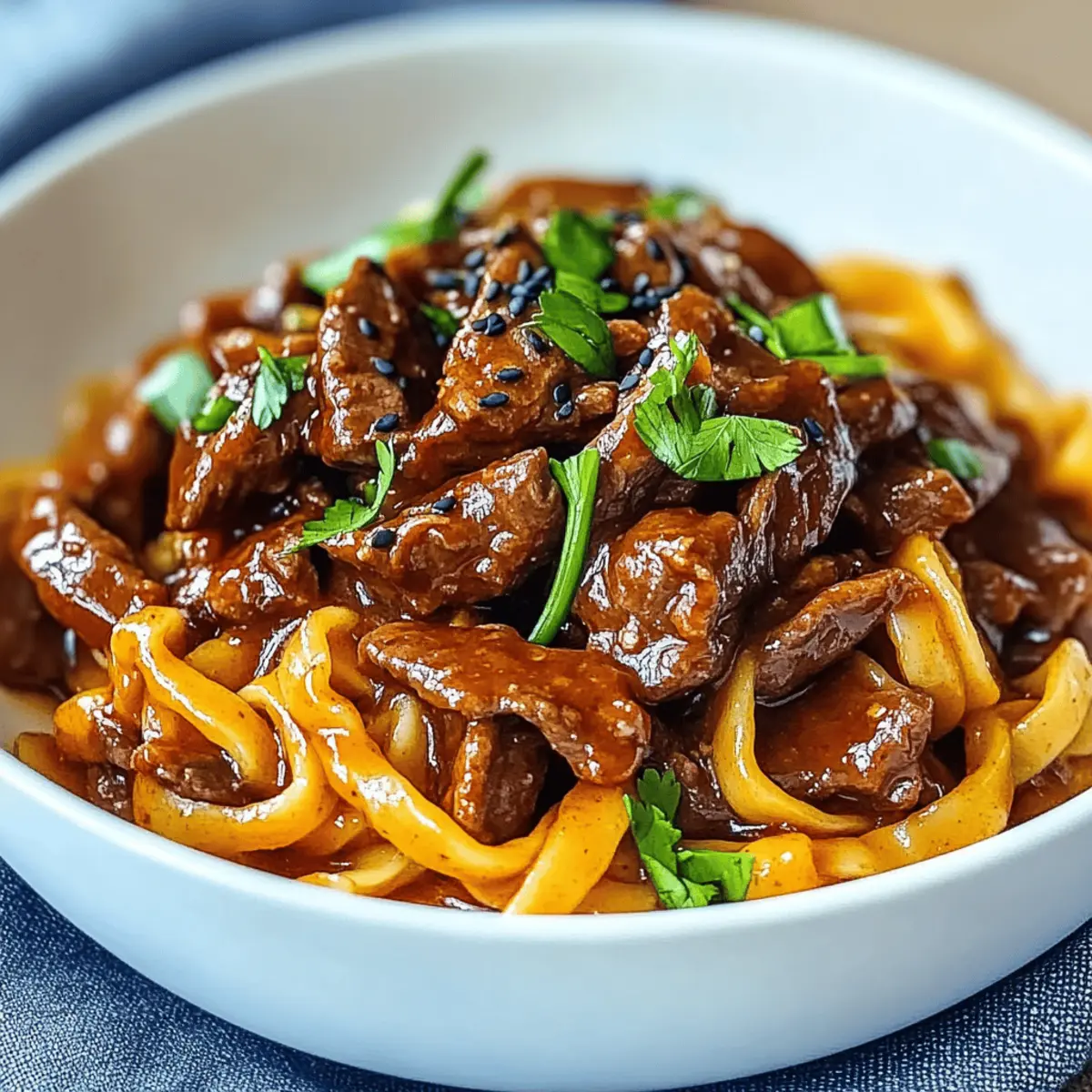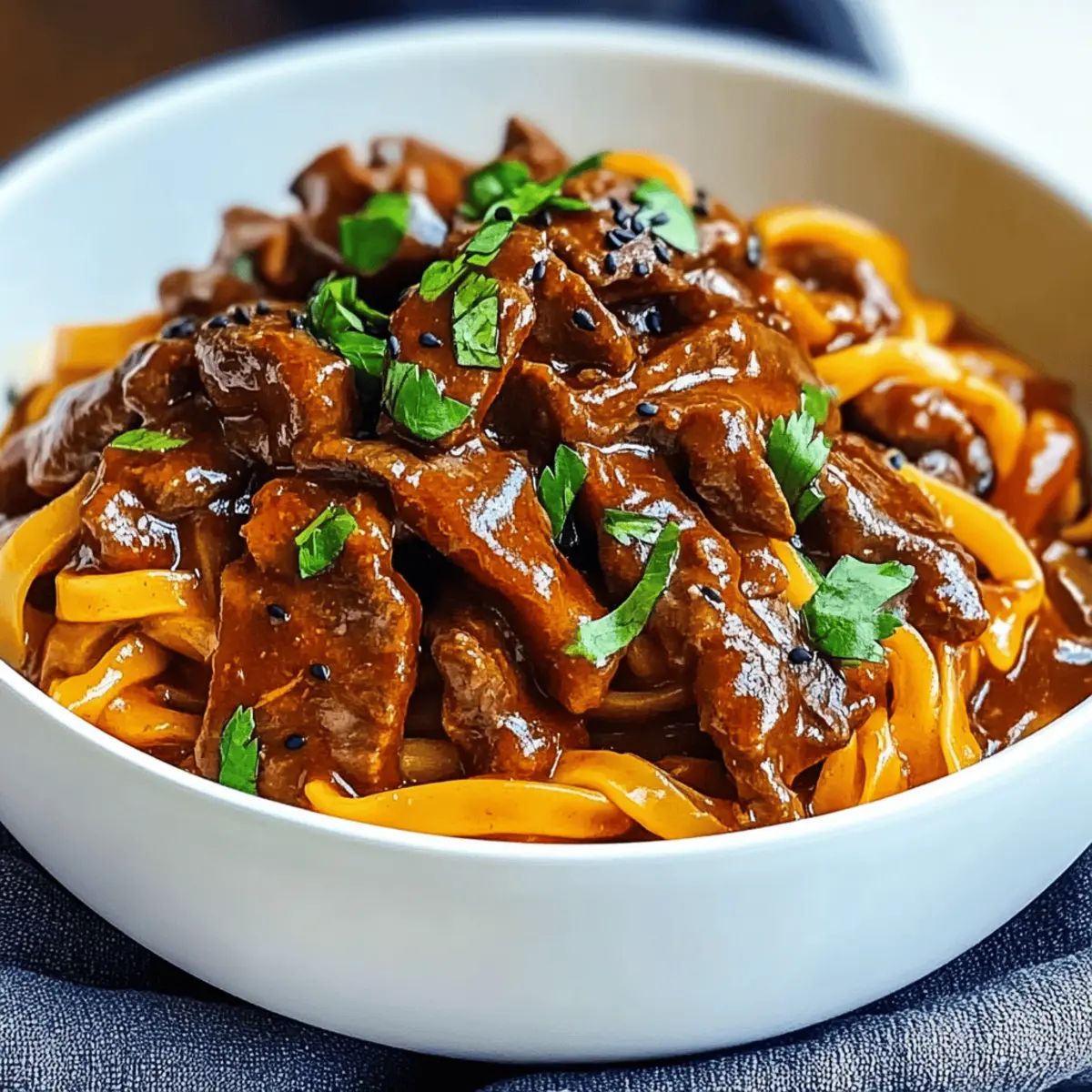 Once the noodles are fully cooked, taste your Slow Cooker Korean Beef Noodles and adjust the seasoning with salt and pepper if desired. For a fresh finish, sprinkle in chopped coriander and give it a gentle stir. Serve hot, garnished with black sesame seeds for that extra touch of elegance and flavor!