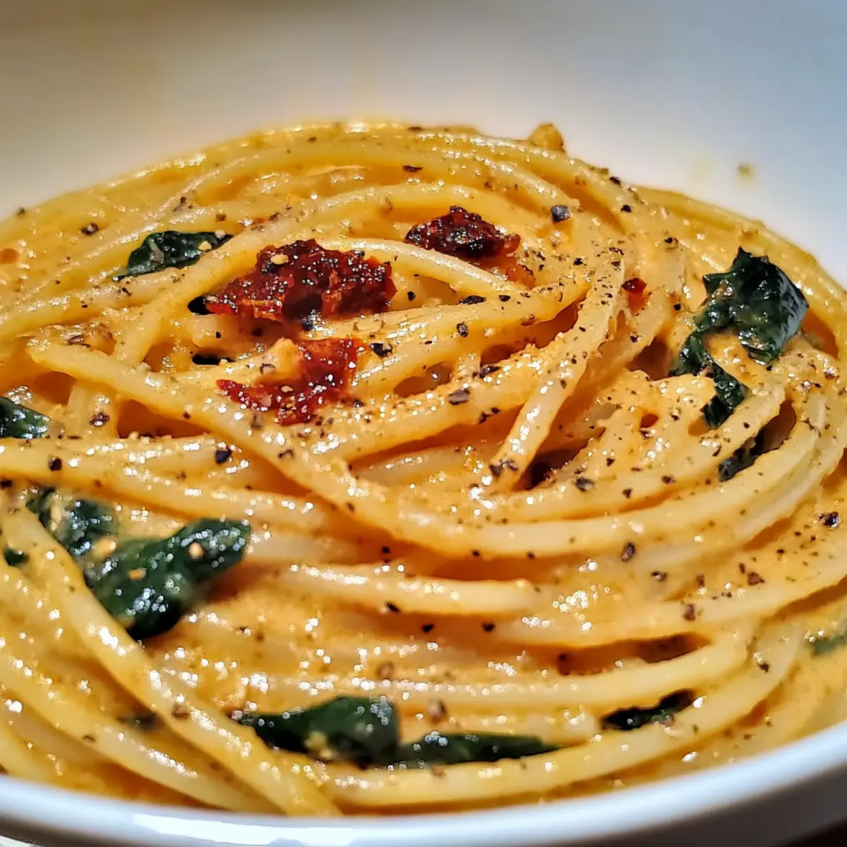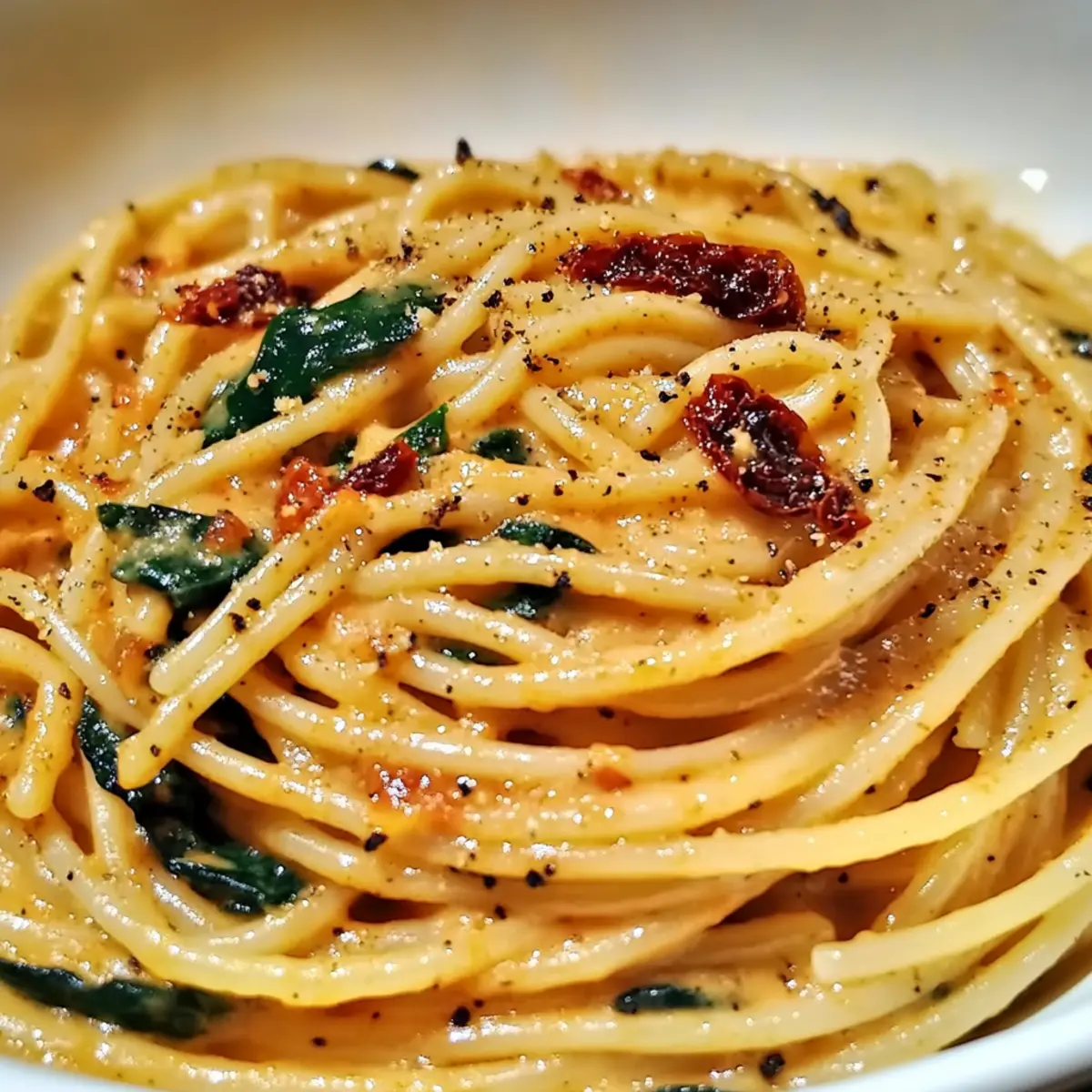 Creamy Spaghetti & Spinach with Sun-Dried Tomato Bliss