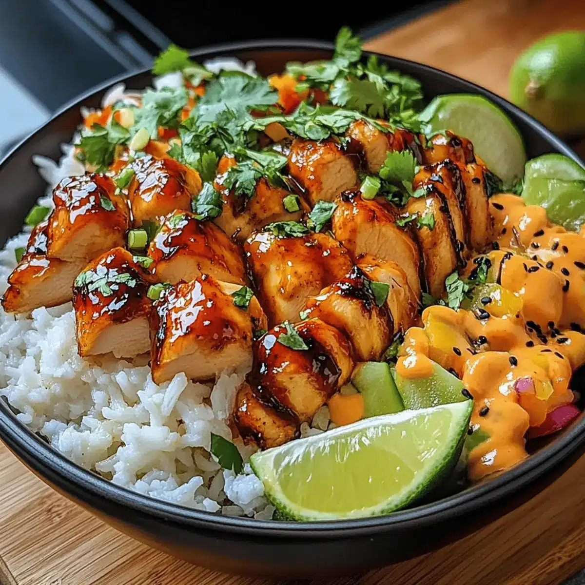 Flavor Boost: Garnish wisely: Adding fresh cilantro and a squeeze of lime right before serving elevates the flavor profile and freshness of your spicy maple chicken and coconut rice.