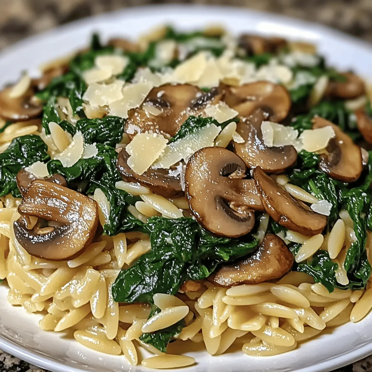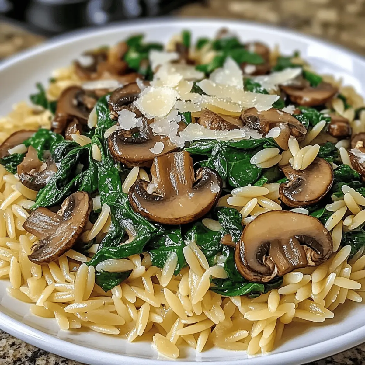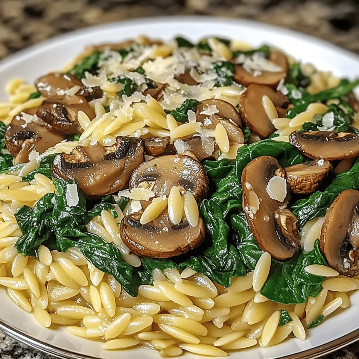 Spinach Mushroom Orzo Skillet with Herbs and Cheese Bliss