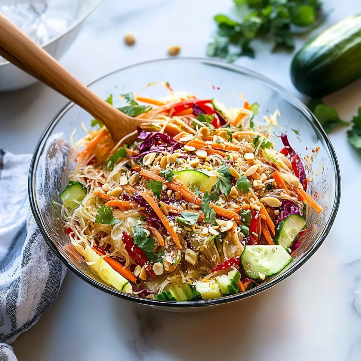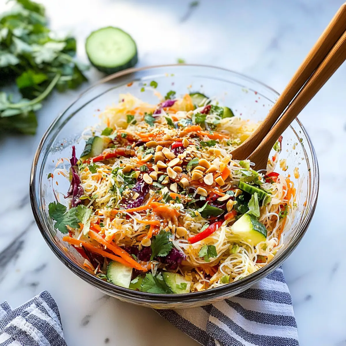 - Grain Upgrade: Replace rice noodles with quinoa or farro for a wholesome grain base, enhancing the salad’s nutrition and texture.