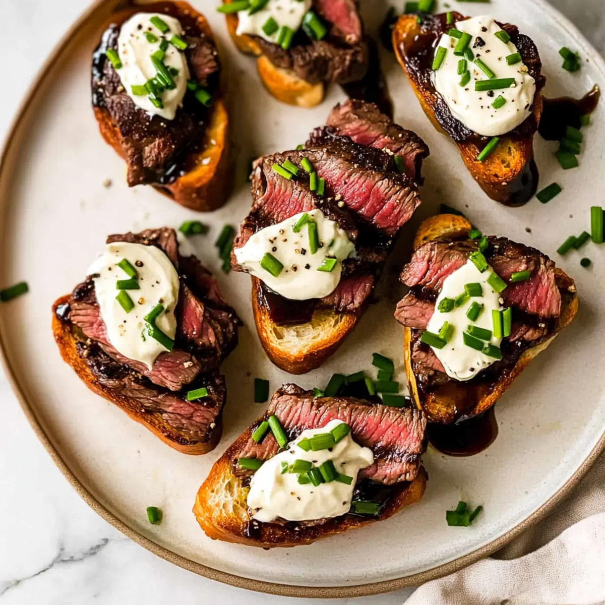 Presentation Matters: For an eye-catching look, arrange the crostini on a beautiful platter and garnish generously. This elevates the visual appeal of your steak crostini and impresses guests!